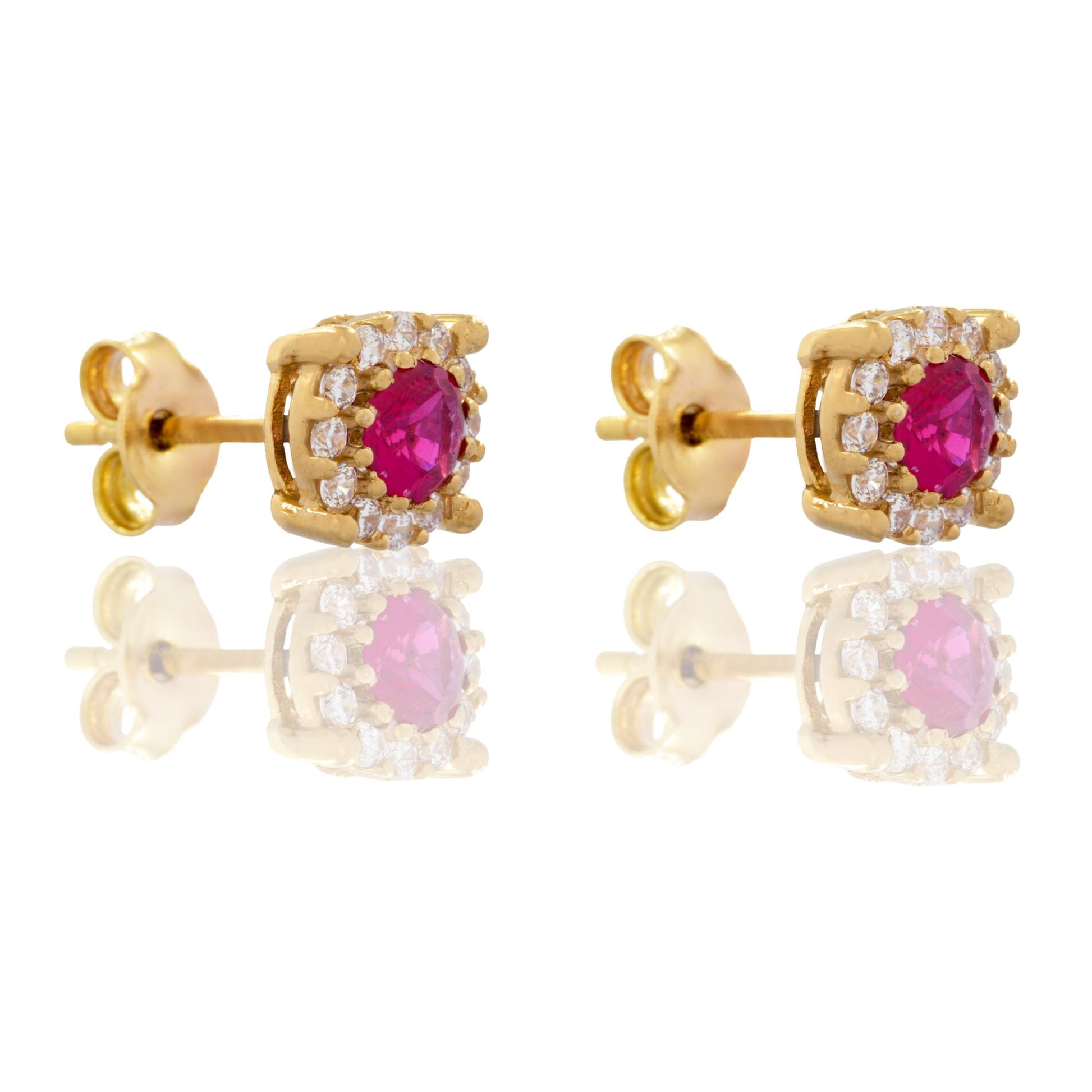 Orecchini in oro GIALLO Oro 18 carati Tondi Centro E Contorno tondi Centro E Contorno Pavè Zirconi bianchi, Zircone Rosso Gr. 2,2