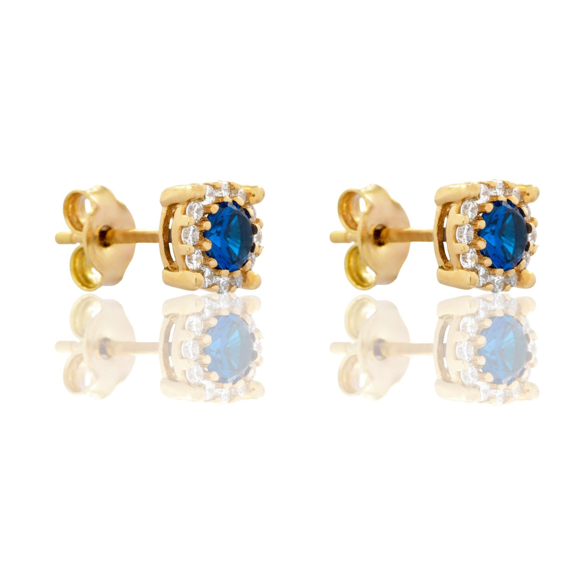 Orecchini in oro GIALLO Oro 18 carati Tondi Centro E Contorno tondi Centro E Contorno Pavè Zirconi bianchi, Zircone Blu Gr. 2,1