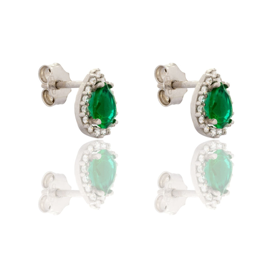 Orecchini in oro BIANCO Oro 18 carati Goccia Centro E Contorno Pavè Zirconi bianchi, Zircone Verde, Pietre (product.metafields.custom.pietre) Gr. 1,3