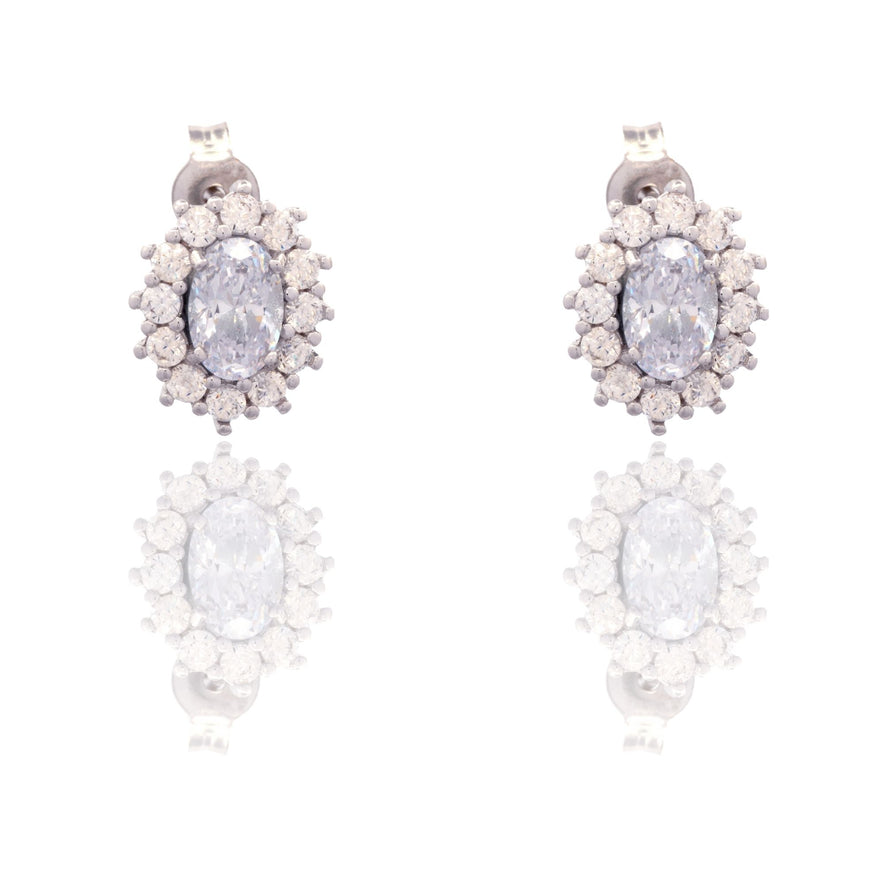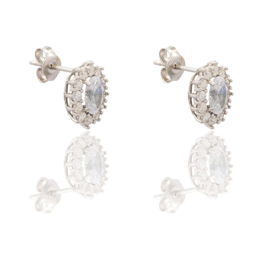 Orecchini in oro BIANCO Oro 18 carati Modello Kate Centro E Contorno Zirconi Bianchi, Zircone Bianco Gr. 2,2