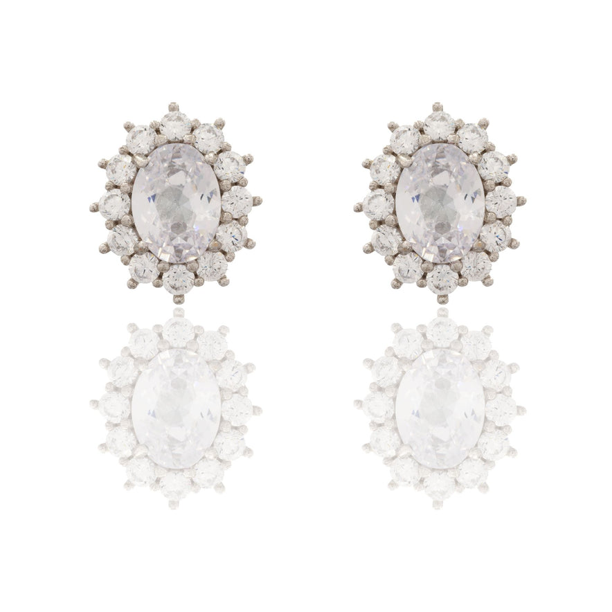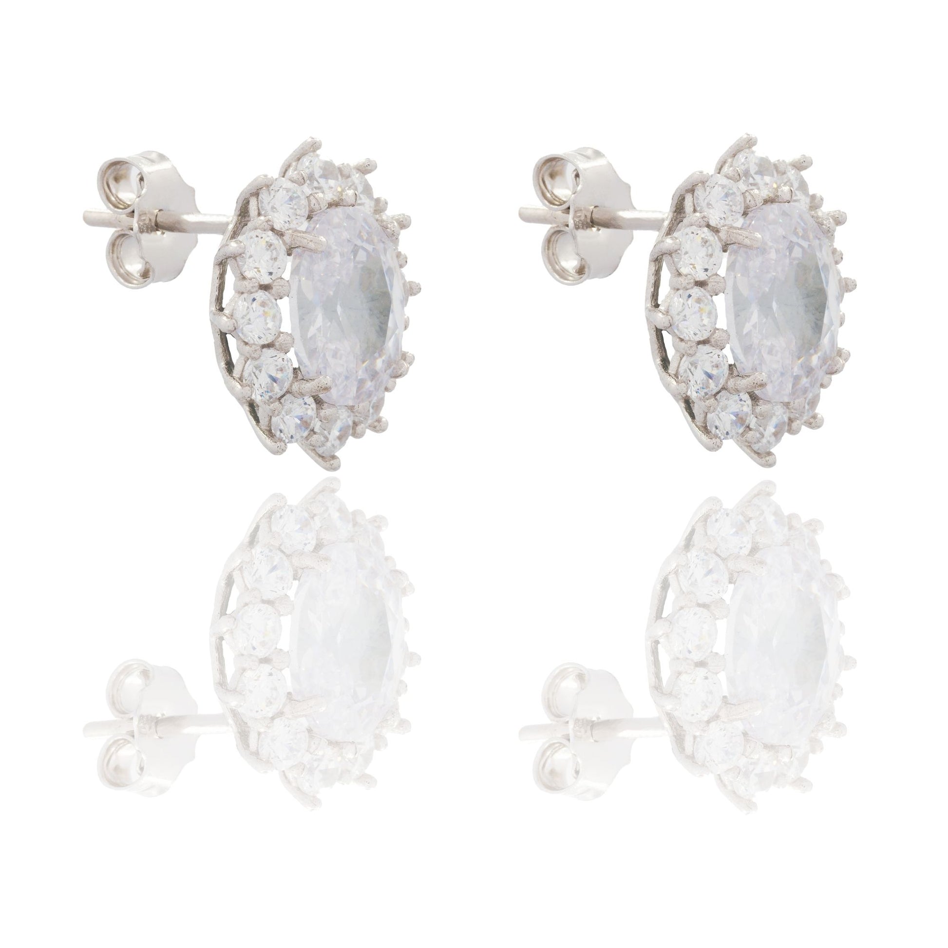 Orecchini in oro BIANCO Oro 18 carati Modello Kate Centro E Contorno Zirconi Bianchi, Zircone Bianco Gr. 3,45