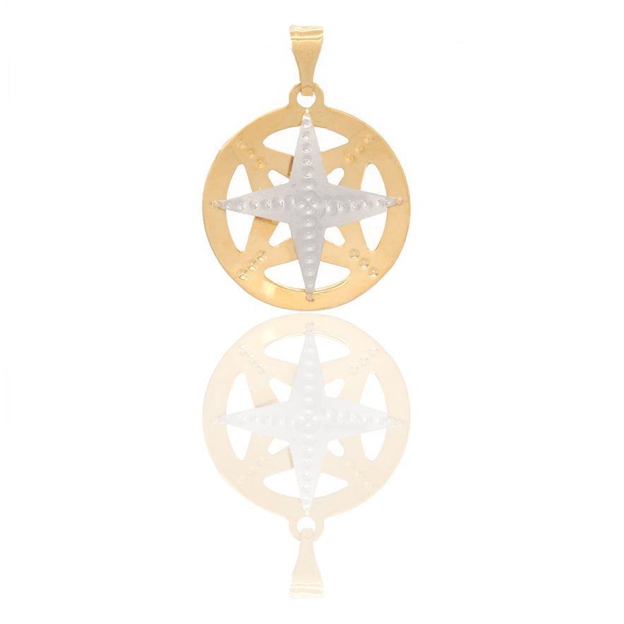 Ciondolo in oro BICOLORE Oro 18 carati Rosa dei venti traforata Solo Oro 2,5cm x 1,9cm Gr. 1,6