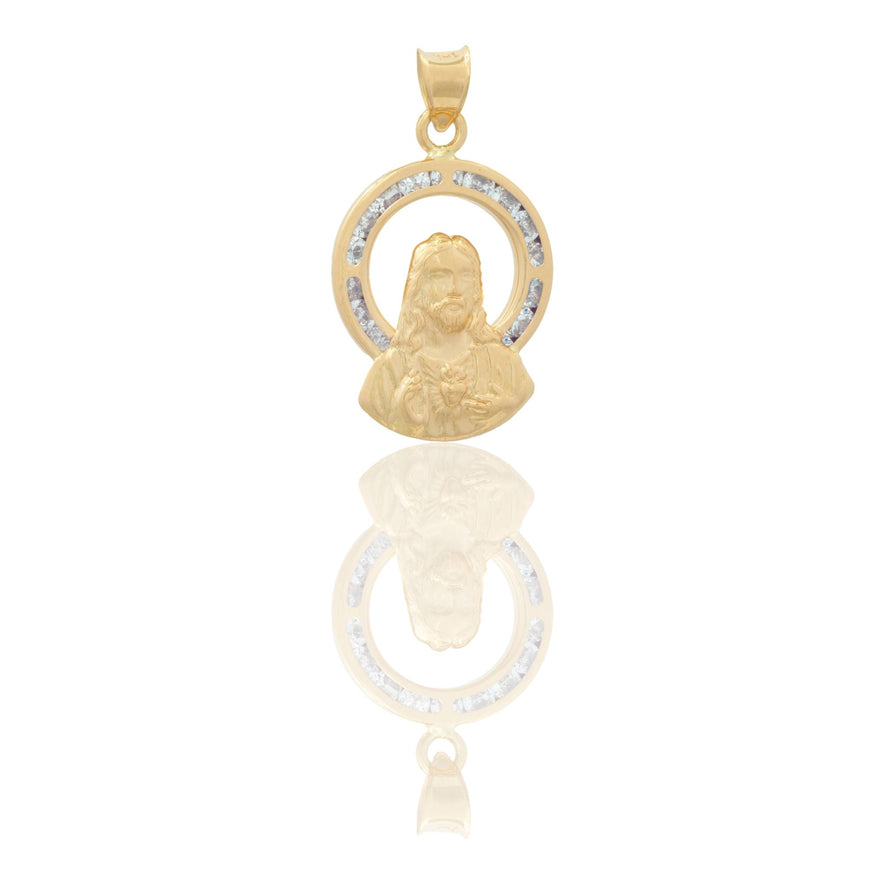Ciondolo in oro GIALLO Oro 18 carati Gesu' Mezzo Busto Con Aureola Zirconi Bianchi Gr. 1,5