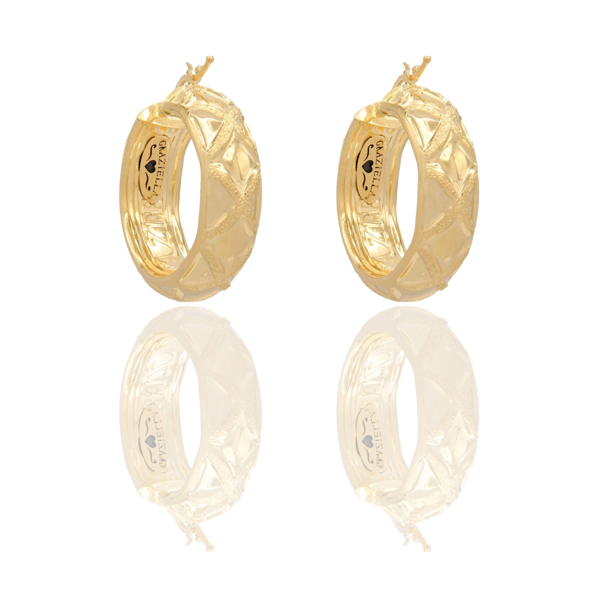 Orecchini in oro GIALLO Oro 18 carati Cerchi Con Rombi Solo Oro Spessore mm. 10 diametro interno cm.3 Gr. 8,35