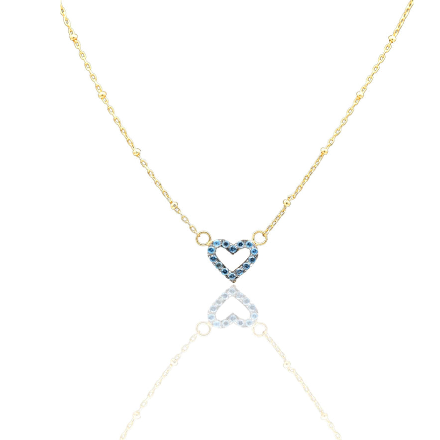 Collana in oro GIALLO Oro 18 carati Catenina Pallinata Sagoma Cuore Pave' Zirconi blu cm.43 Gr. 2,1