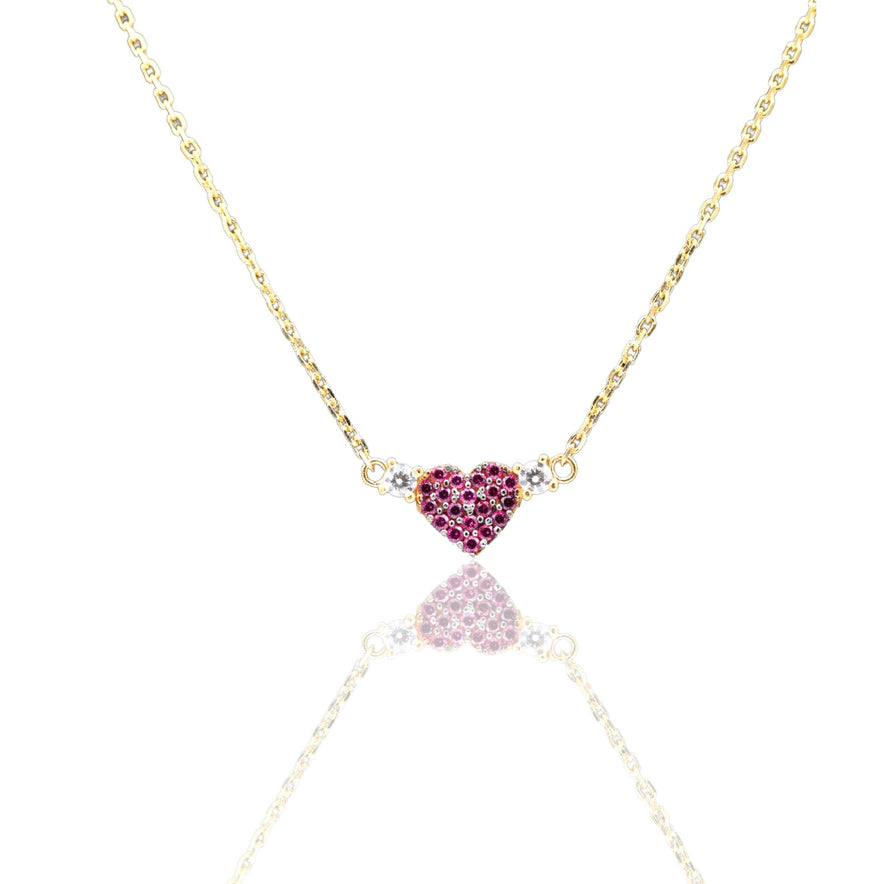 Collana in oro GIALLO Oro 18 carati Catenina Rolò Cuore Pave' Zirconi Rossi cm.43 Gr. 2,15