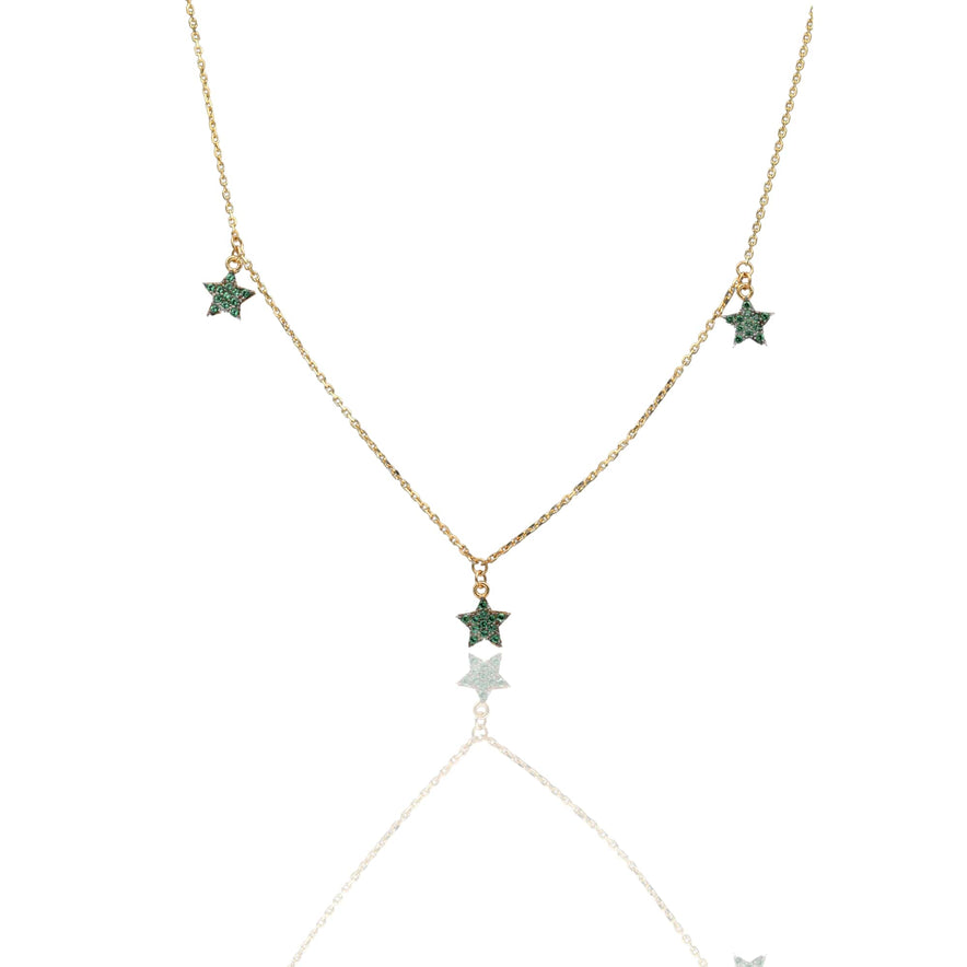 Collana in oro GIALLO Oro 18 carati Catenina Rolò Stelle pendenti pavè Zirconi Verdi cm.43 Gr. 2,9