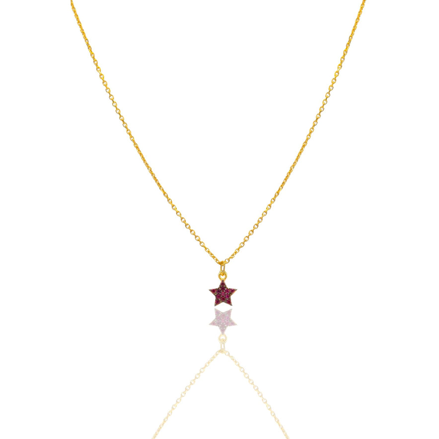 Collana in oro GIALLO Oro 18 carati Catenina rolò Stella Pave' Zirconi fucsia cm.43 Gr. 2,4