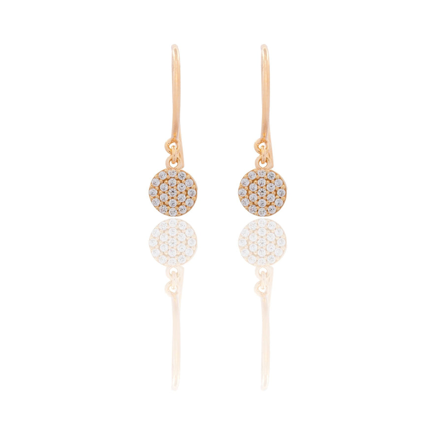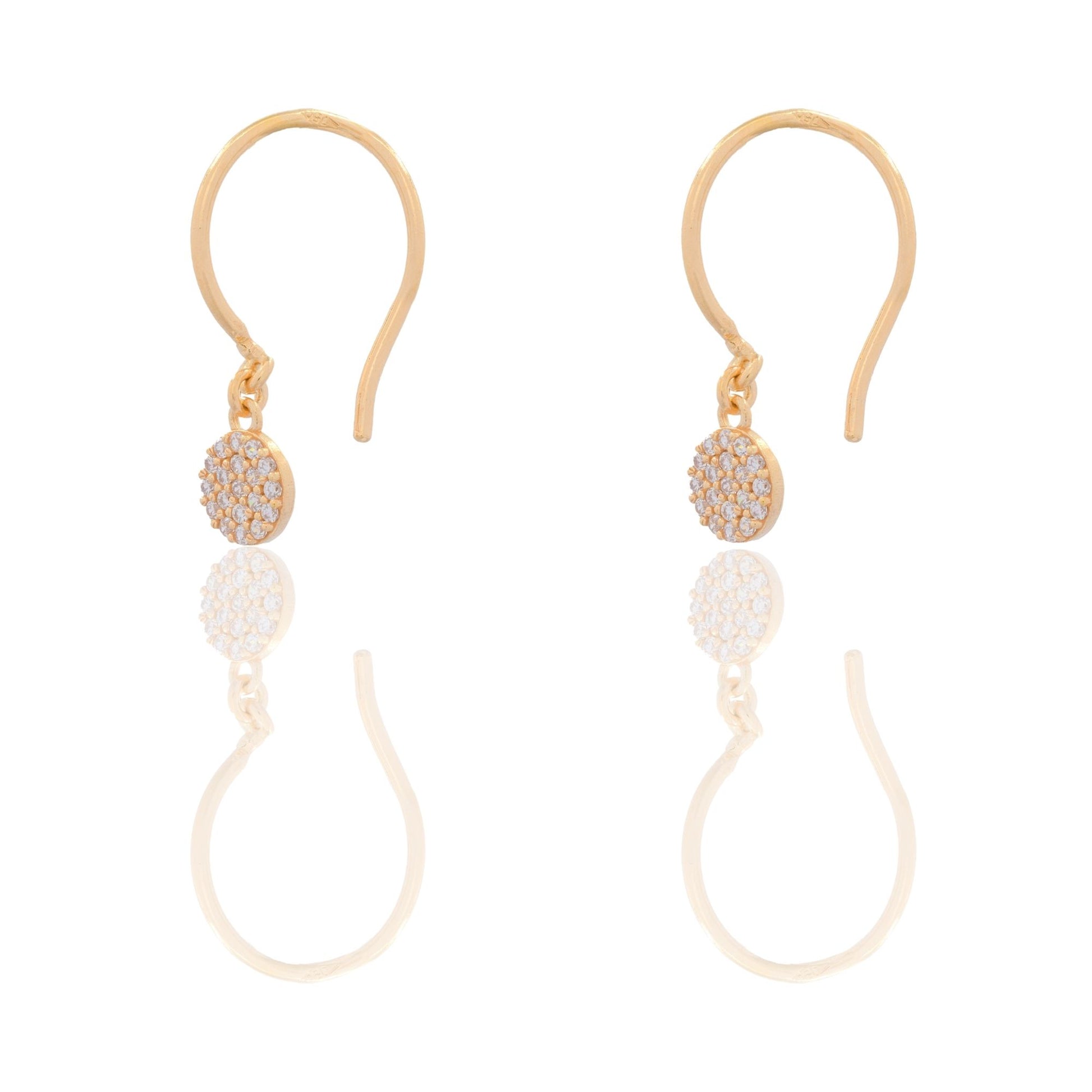 Orecchini in oro GIALLO Oro 18 carati Tondo Pendente Chiusura Monachina Zirconi Bianchi Gr. 1,6