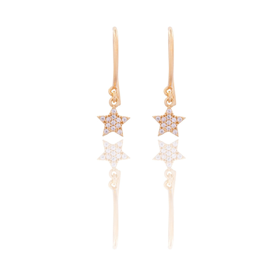 Orecchini in oro GIALLO Oro 18 carati Stella Pendente Chiusura Monachina Zirconi Bianchi Gr. 1,6