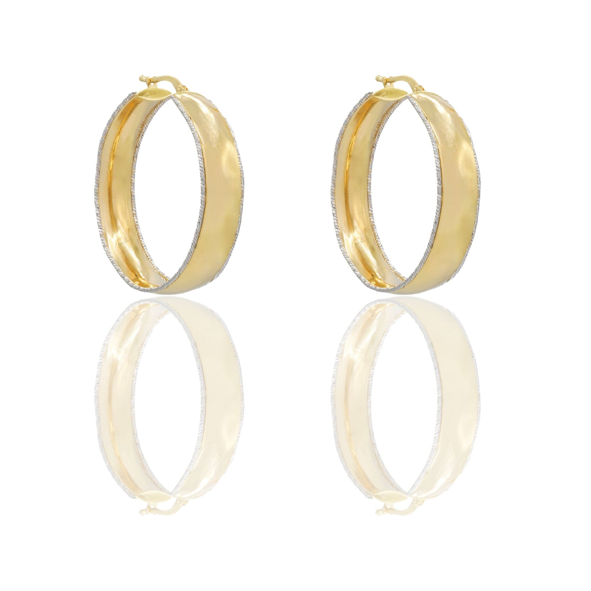 Orecchini in oro BICOLORE Oro 18 carati Cerchio Solo Oro Spessore mm. 8,5 diametro interno cm.3 Gr. 7,6