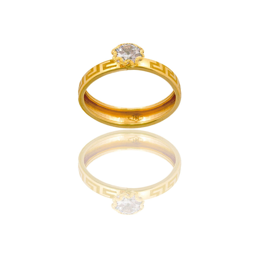Anello in oro GIALLO Oro 18 carati Solitario Zircone Bianco spessore gambo 3,4 mm , spessore pietra 6,12 Gr. 1,3