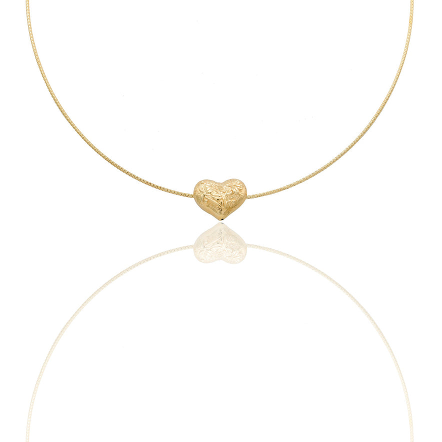 Collane in Oro Giallo Oro 18 carati Cuore elettroformato Con Fiori Solo Oro Lunghezza cuore cm. 1,5 Larghezza Cuore cm. 1,8 Spessore Cuore mm. 8 gr. 3,6
