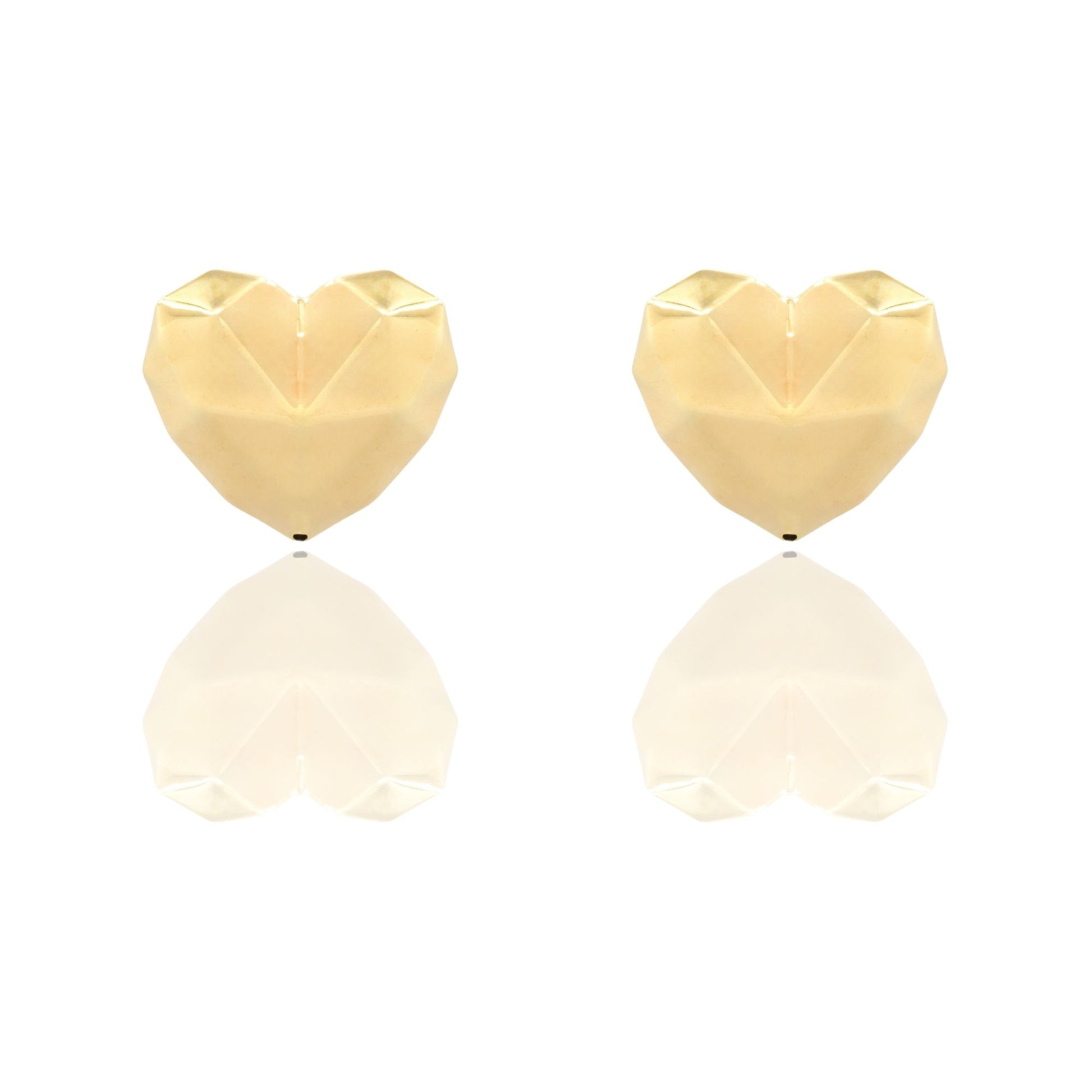 Orecchini in oro GIALLO Oro 18 carati Cuore Sfaccettato Elettroformato Solo Oro Gr. 2