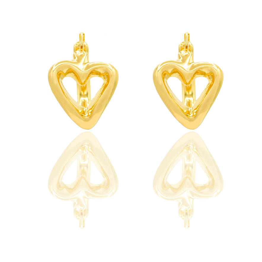 Orecchini in oro GIALLO Oro 18 carati Cerchio Cuore traforato Elettroformato Solo Oro cm. 2,5 x 2,5 spessore mm. 3 diametro cm.1,5 Gr. 3,4