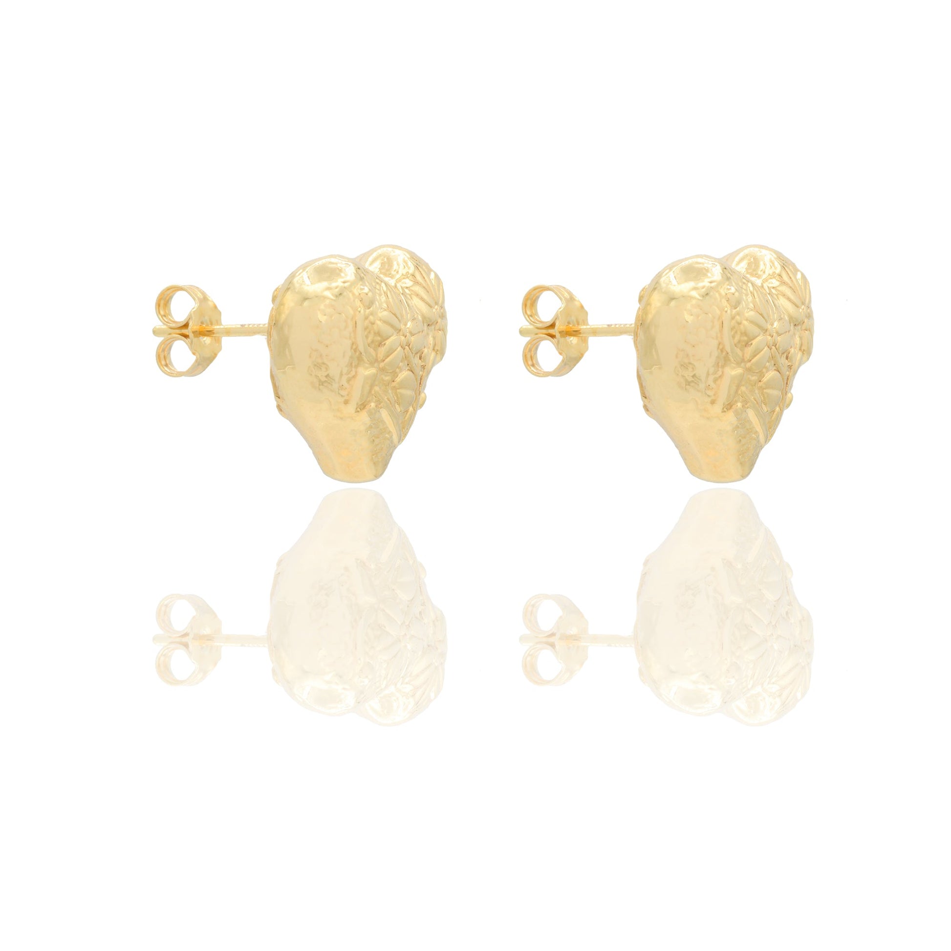 Orecchini in Oro Giallo Oro 18 carati Cuore Elettroformato Con Fiori Solo Oro Lunghezza cm. 1,5 larghezza 1,9 gr. 2,1