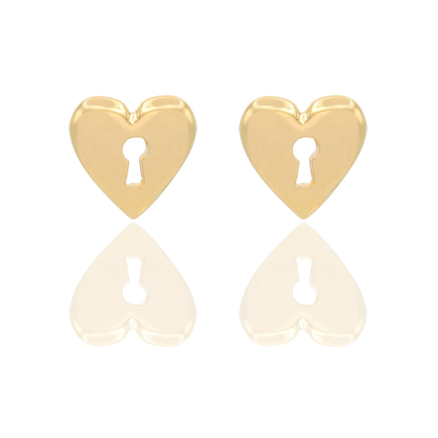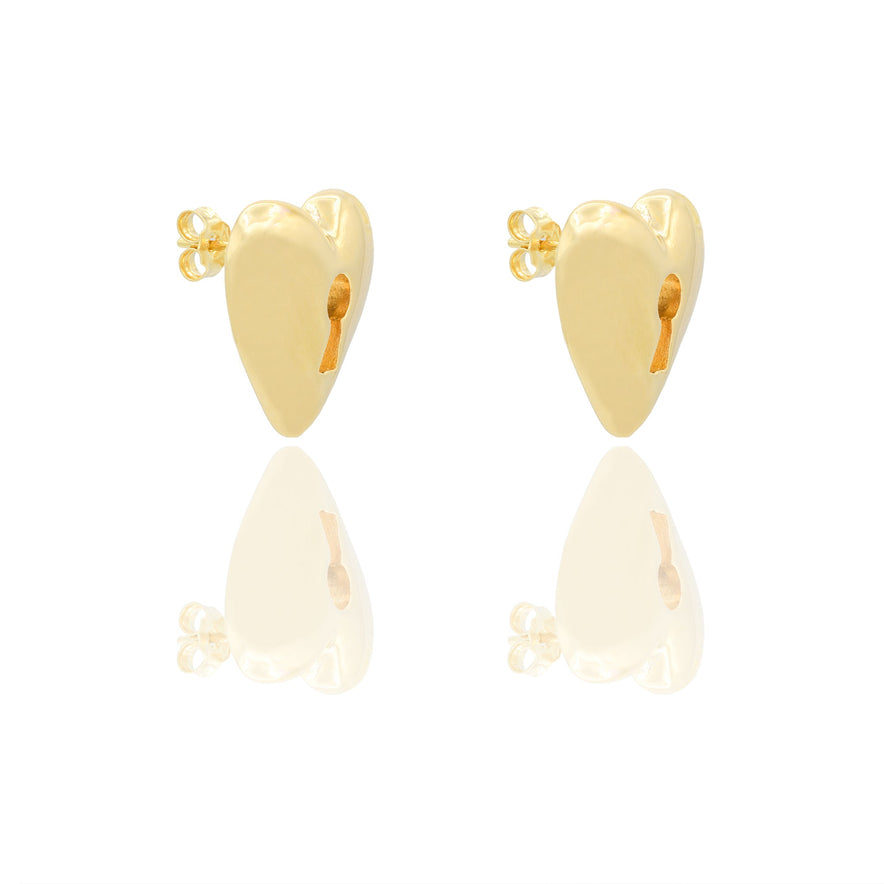 Orecchini in Oro Giallo Oro 18 carati Cuore Elettroformato Con Fessura Chiave Solo Oro Lunghezza cm. 2 larghezza 2 gr. 2,6