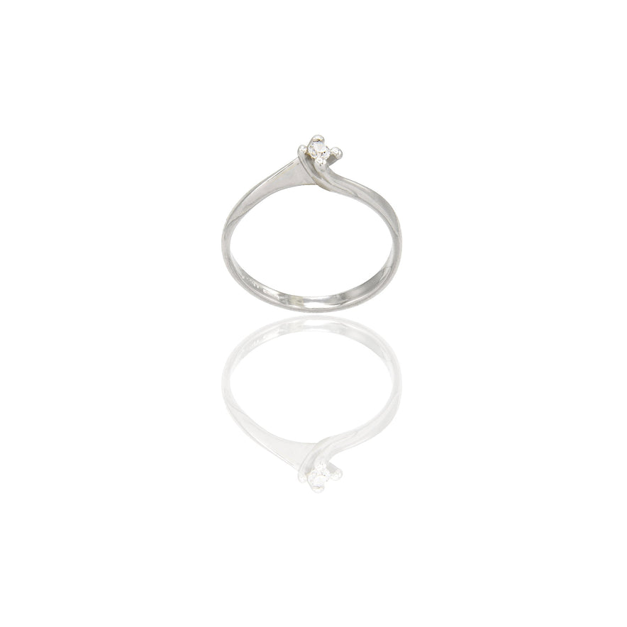 Anello in oro BIANCO Oro 18 carati Solitario Valentino 4 griffe Zircone Bianco spessore gambo 1,7 mm , spessore pietra 3 Gr. 1,6