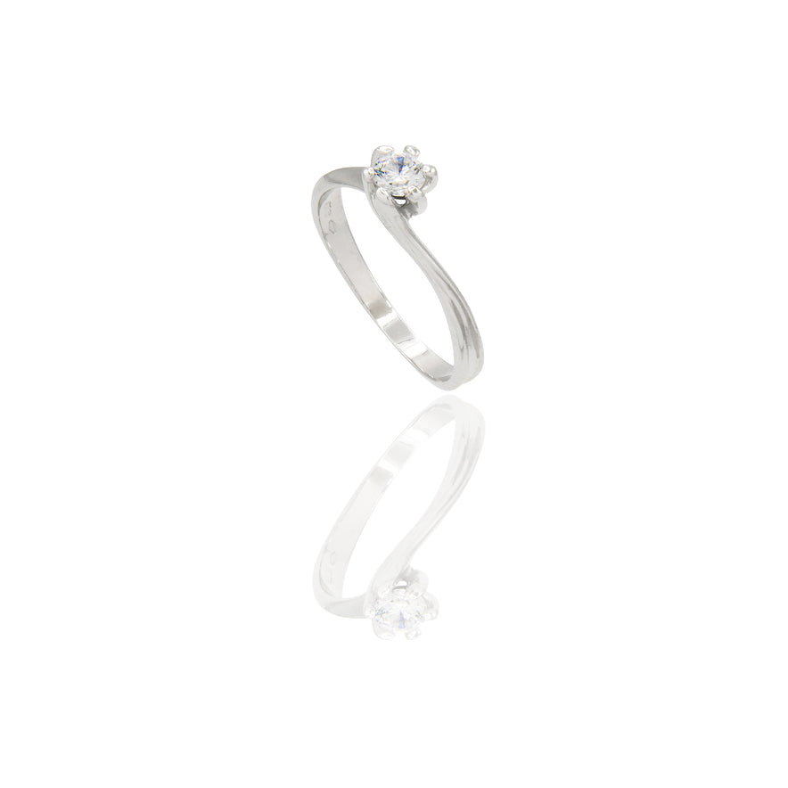 Anello in oro BIANCO Oro 18 carati Solitario 6 griffe Zircone Bianco spessore gambo 2,0 mm , spessore pietra 5 Gr. 2,65