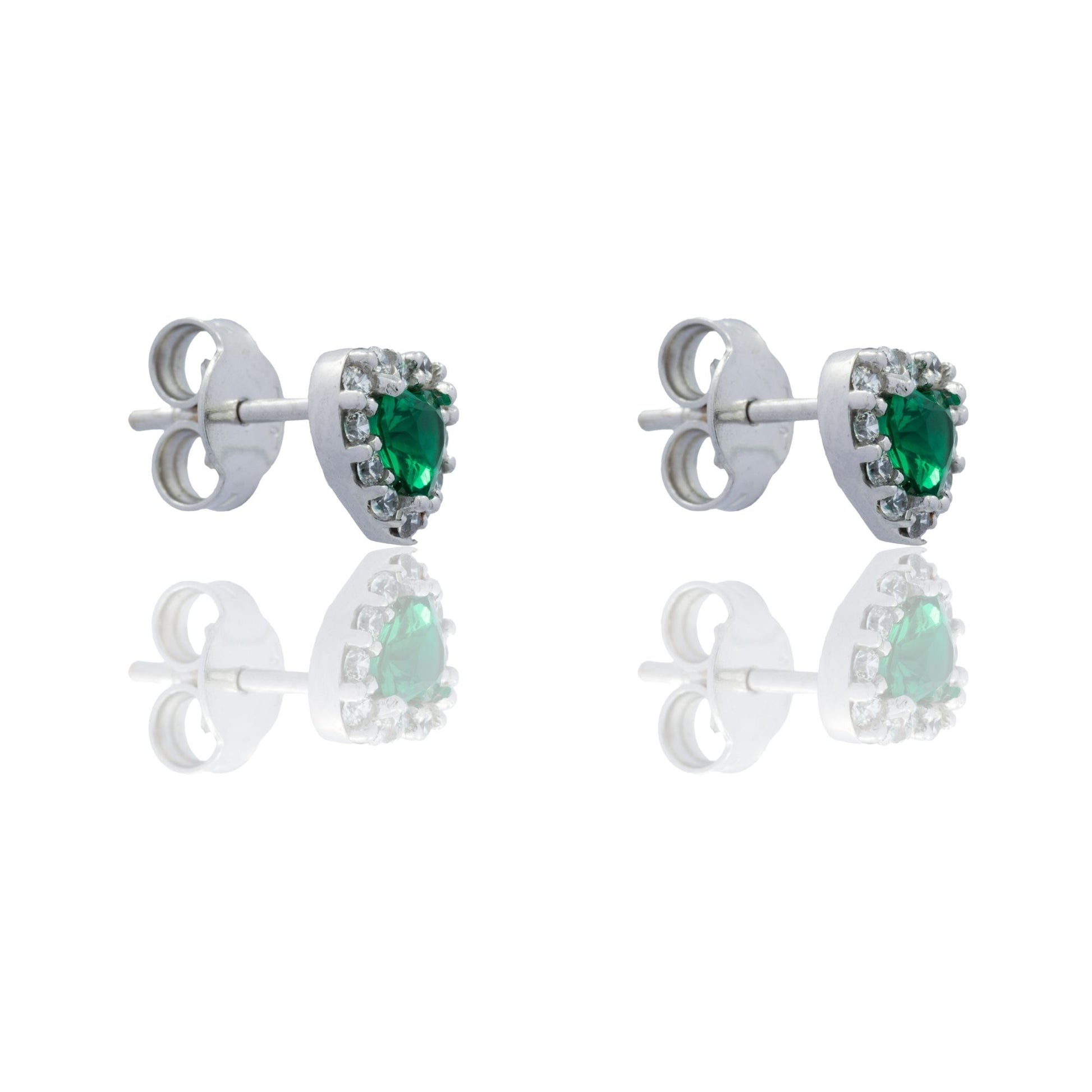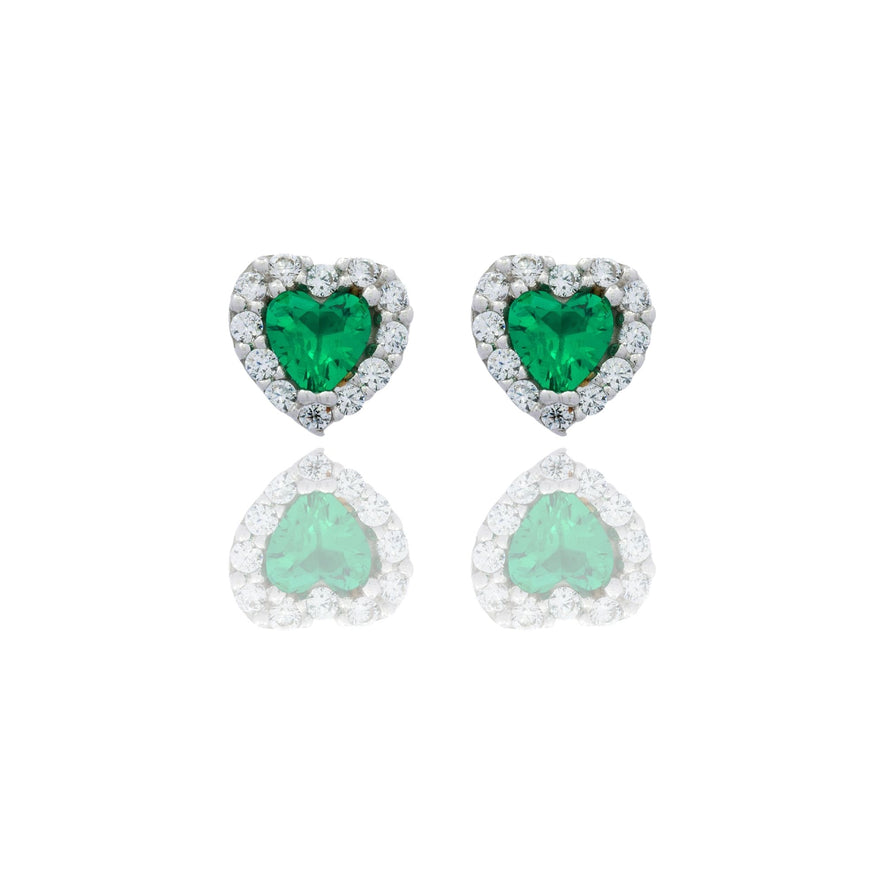 Orecchini in oro BIANCO Oro 18 carati Toppa A Cuore Centro E Contorno Zirconi Verdi, Zirconi Bianchi Gr. 1,6