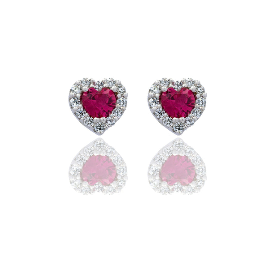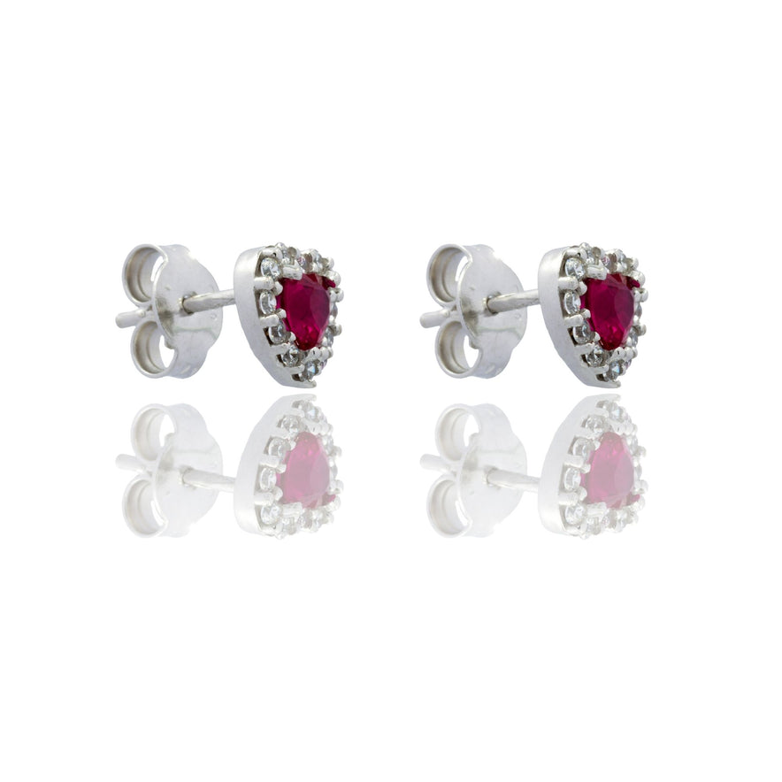Orecchini in oro BIANCO Oro 18 carati Toppa A Cuore Centro E Contorno Zirconi Rossi, Zirconi Bianchi Gr. 1,6