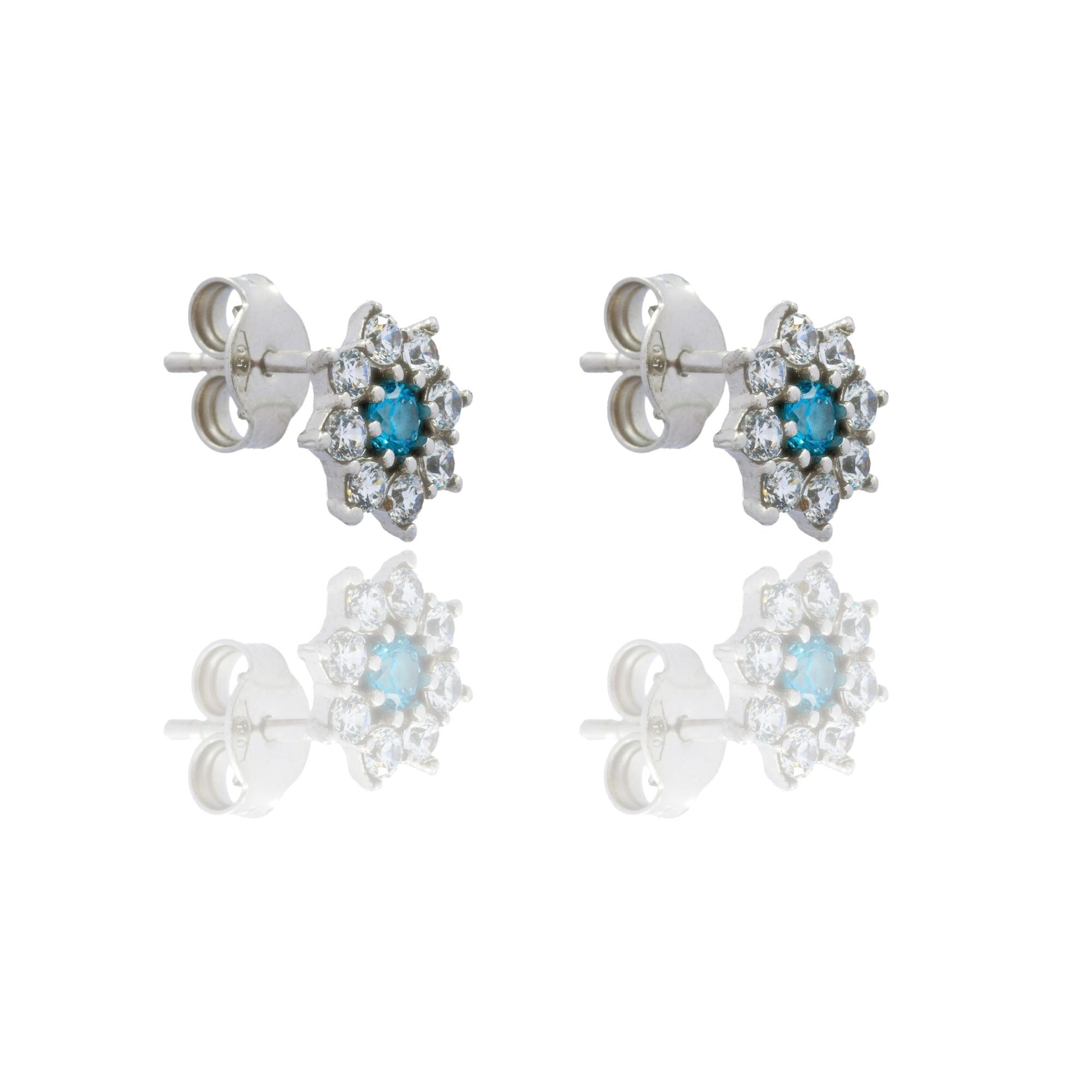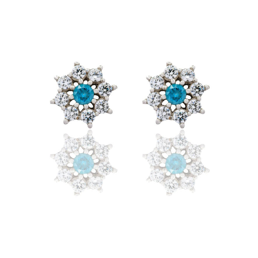 Orecchini in oro BIANCO Oro 18 carati Toppa Fiore Centro E Contorno Zirconi Azzurri, Zirconi Bianchi Gr. 1,8