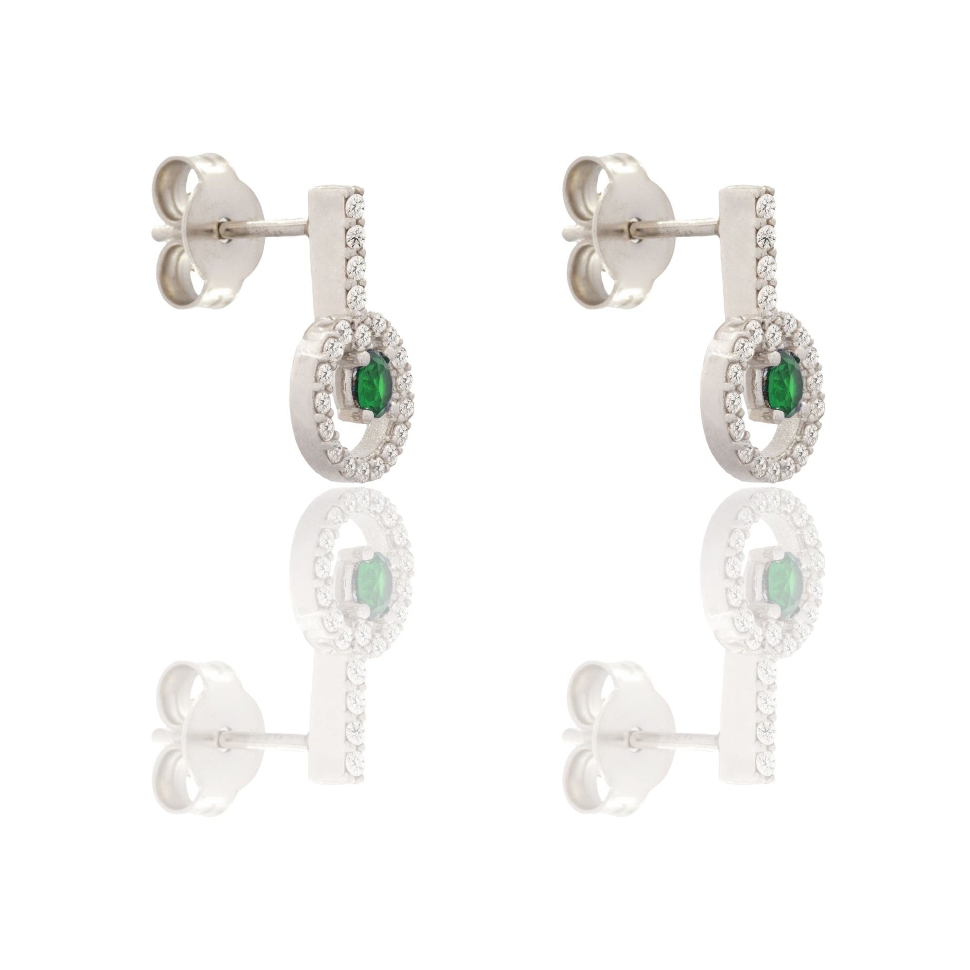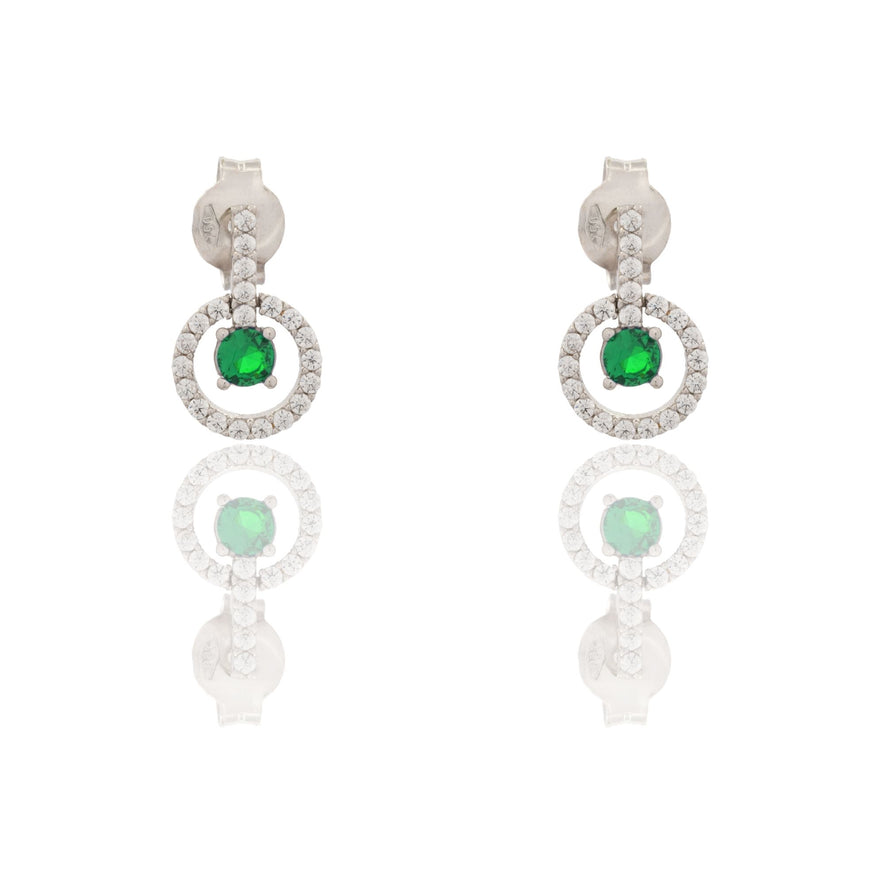 Orecchini in oro BIANCO Oro 18 carati Cerchio Pendente Con Pietra Centrale Zirconi Verdi, Zirconi Bianchi Gr. 2