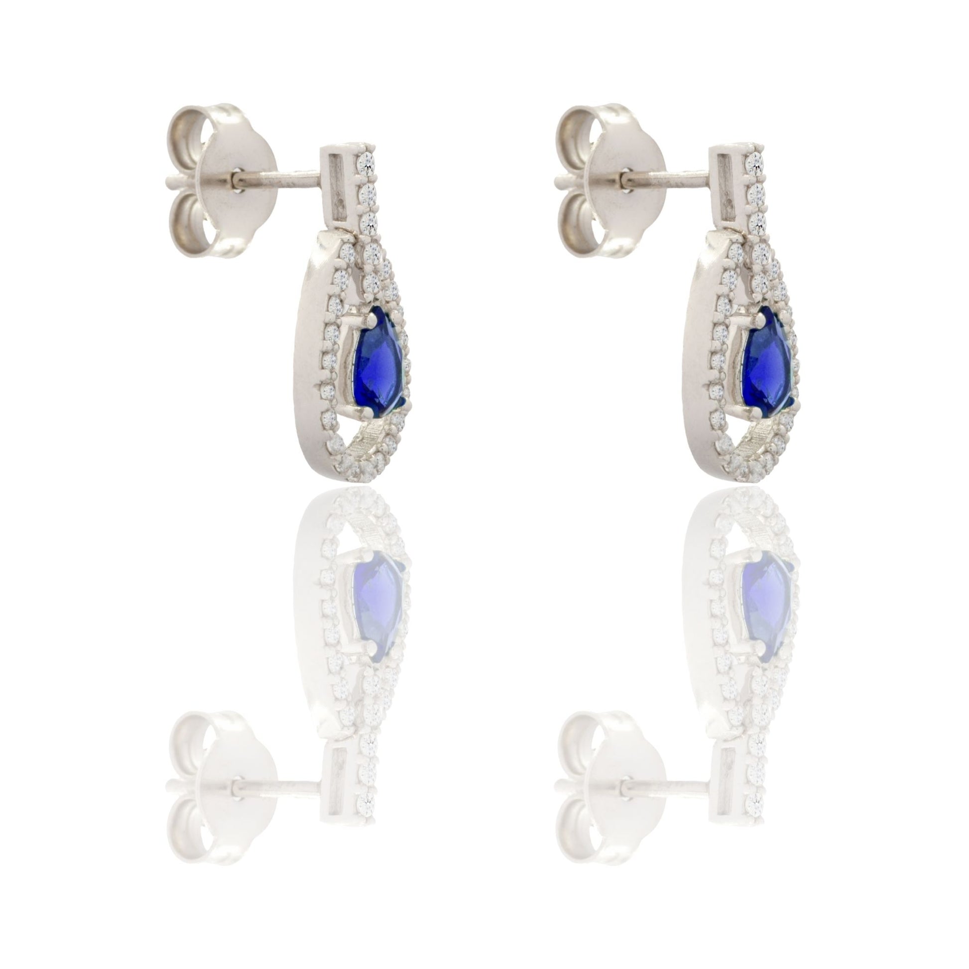 Orecchini in oro BIANCO Oro 18 carati Pendenti A Goccia Zirconi Blu, Zirconi Bianchi Gr. 2,45
