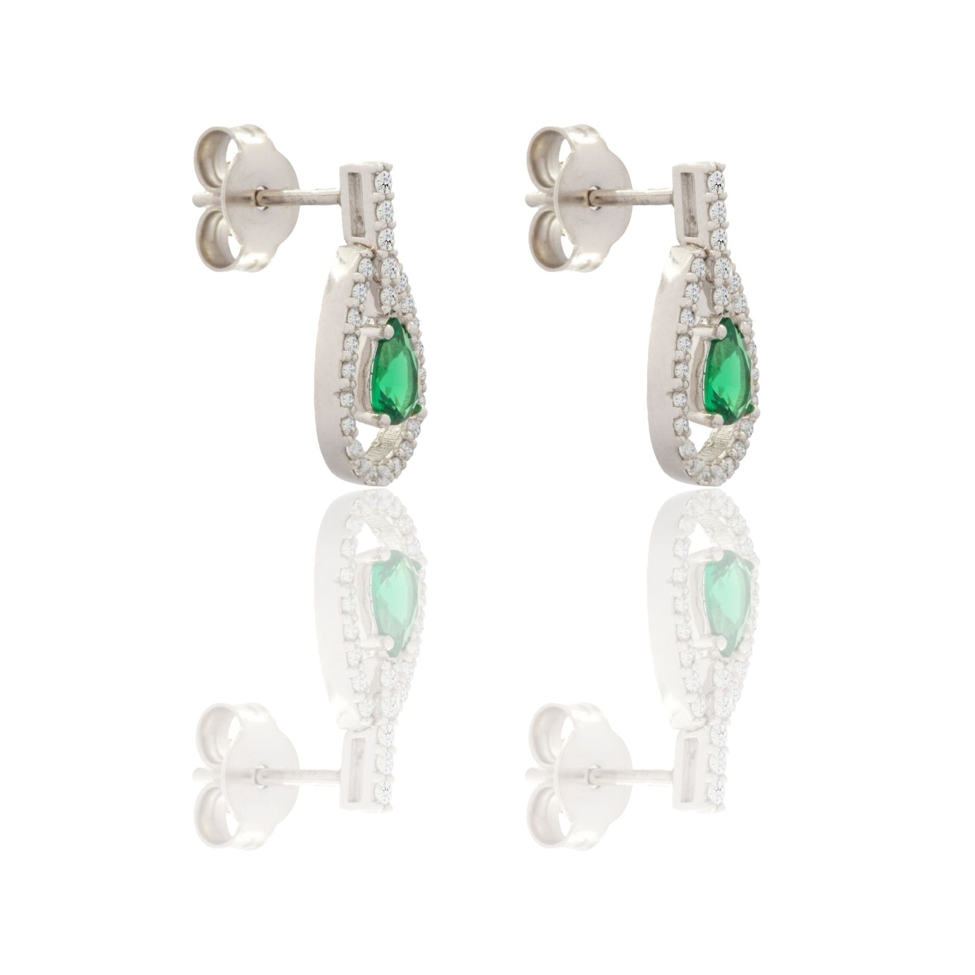 Orecchini in oro BIANCO Oro 18 carati Pendenti A Goccia Zirconi Verdi, Zirconi Bianchi Gr. 2,45