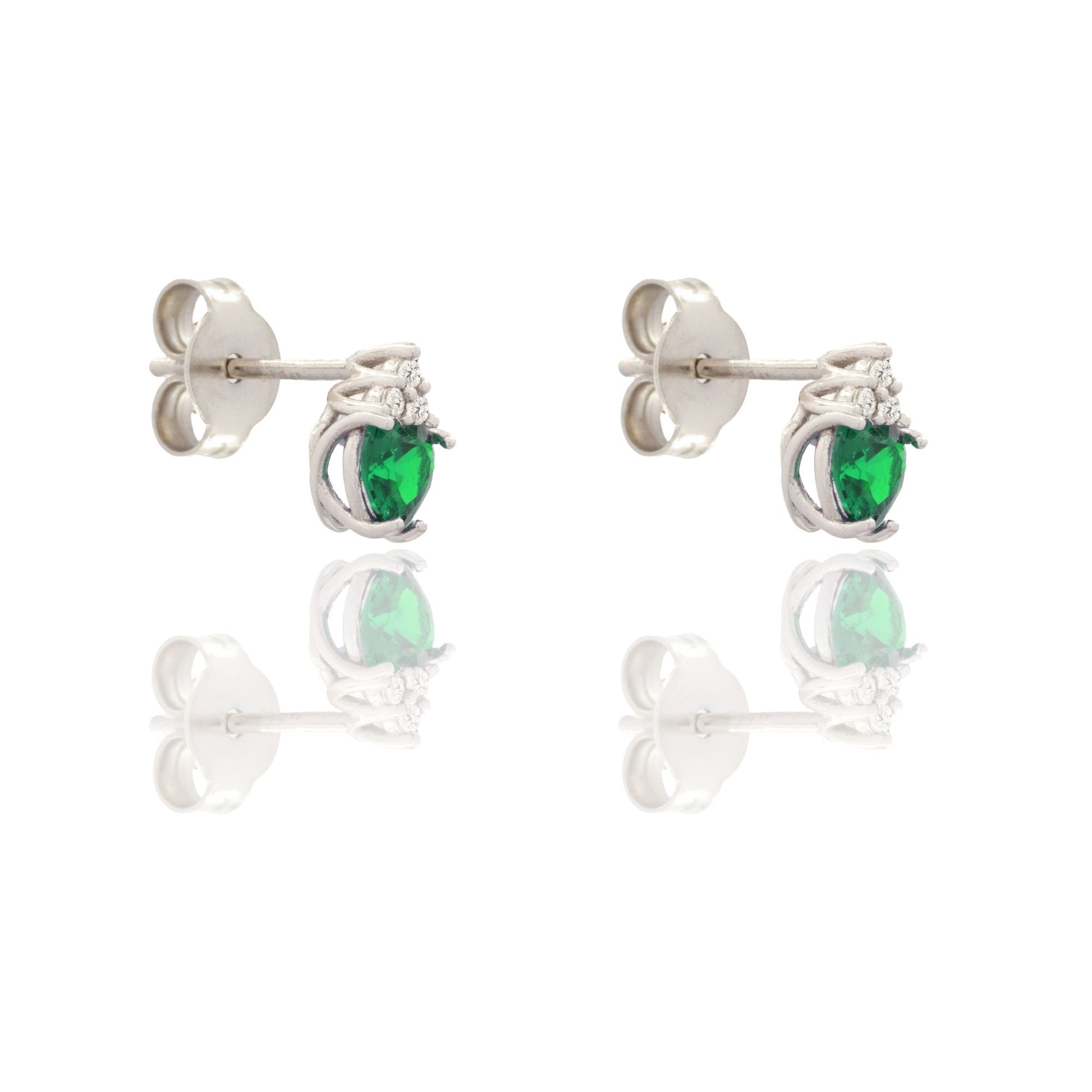 Orecchini in oro BIANCO Oro 18 carati Pendenti A Cuore Zirconi Verdi, Zirconi Bianchi mis. 1 Gr. 1,45