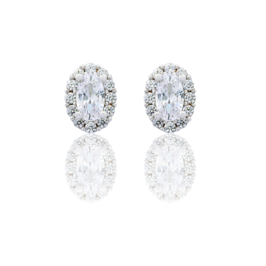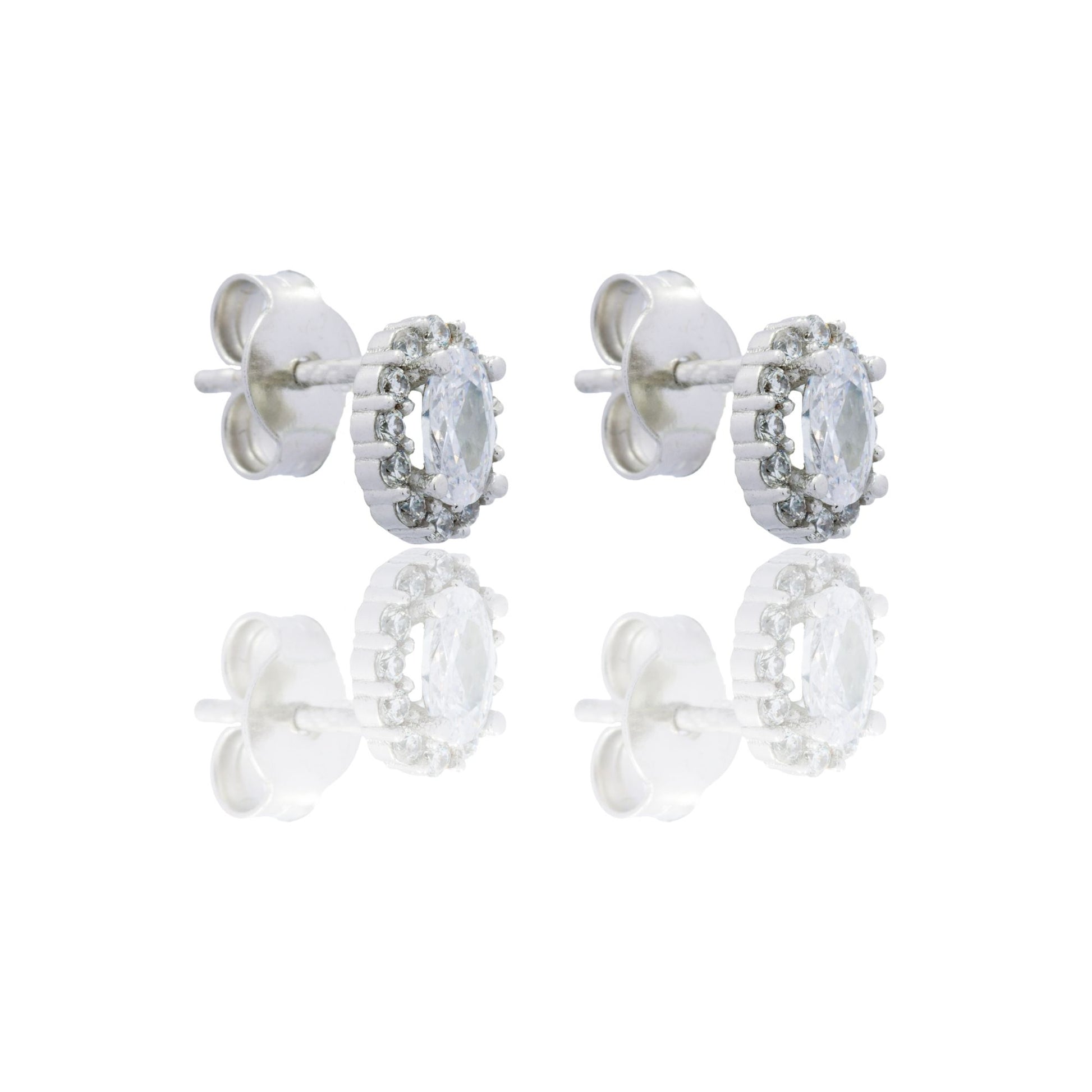 Orecchini in oro BIANCO Oro 18 carati Ovale A Lobo Centro E Contorno Zirconi Bianchi Gr. 1,5