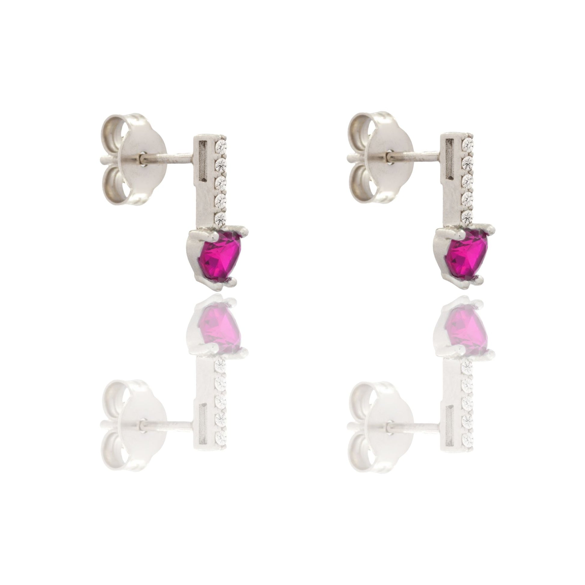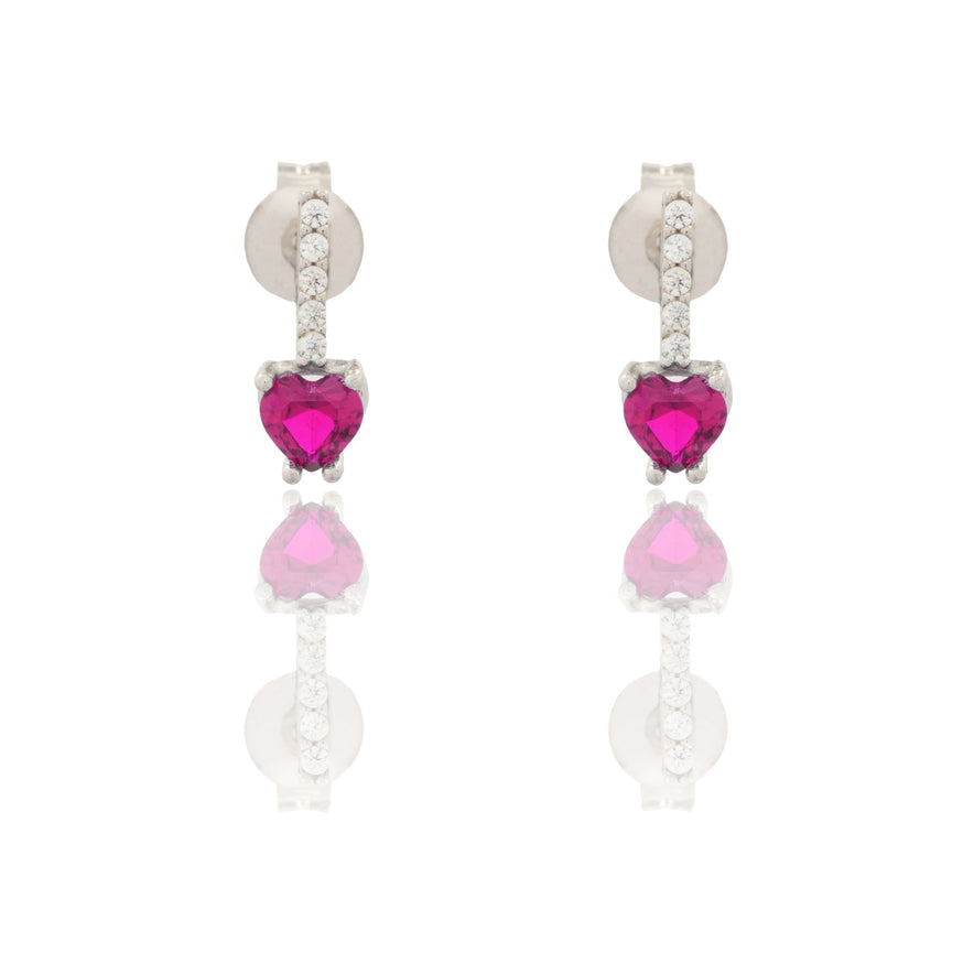 Orecchini in oro BIANCO Oro 18 carati Pendenti A Cuore Zirconi Rossi, Zirconi Bianchi Gr. 1,45