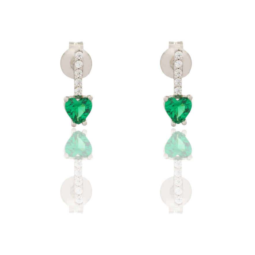 Orecchini in oro BIANCO Oro 18 carati Pendenti A Cuore Zirconi Verdi, Zirconi Bianchi Gr. 1,45
