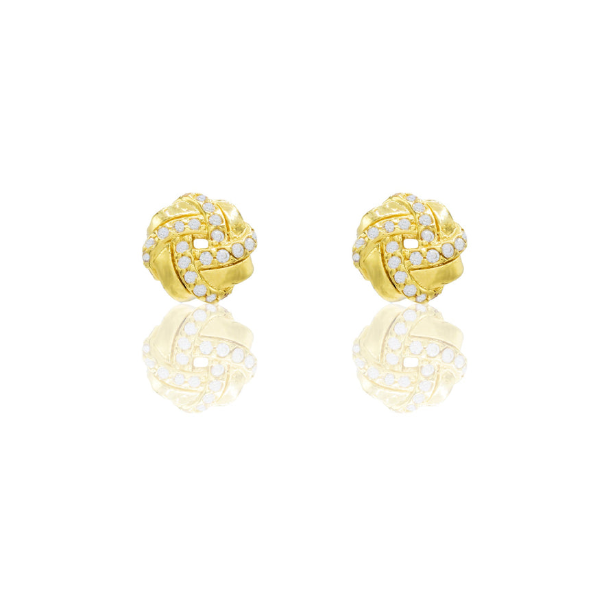 Orecchini in oro GIALLO Oro 18 carati Bottone Intrecciato Zirconi Bianchi Diametro cm.0,80 Gr. 2,2
