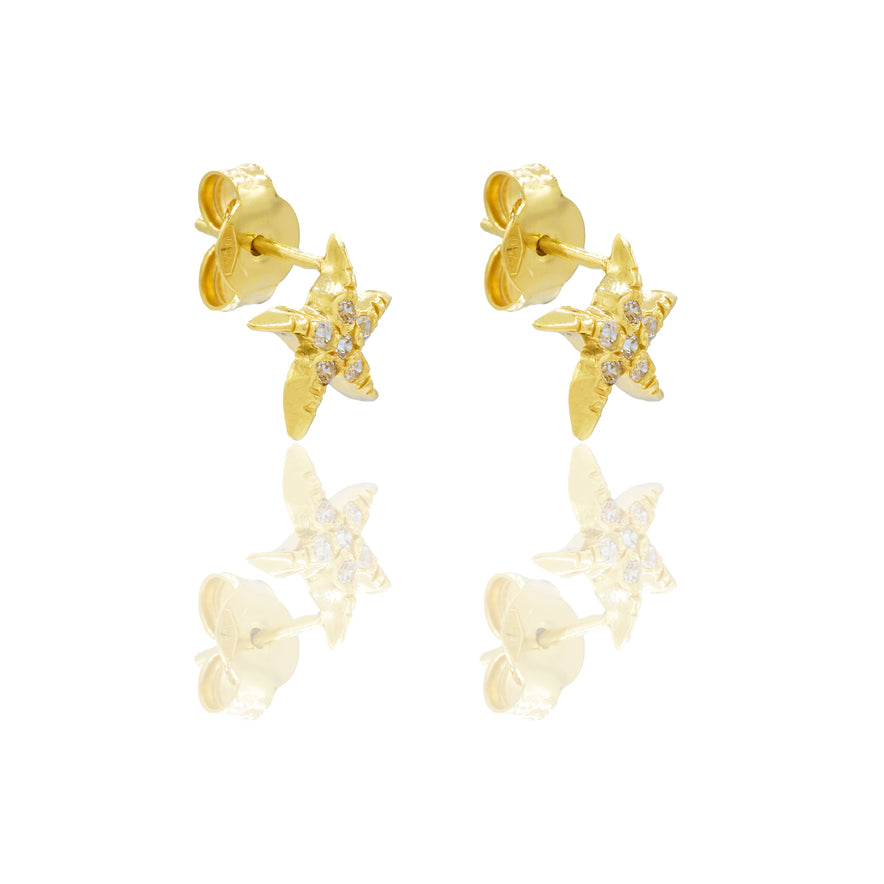 Orecchini in oro GIALLO Oro 18 carati Stella marina pavè Zirconi Bianchi lunghezza cm.1,00 larghezza cm.1,00 Gr. 1,5