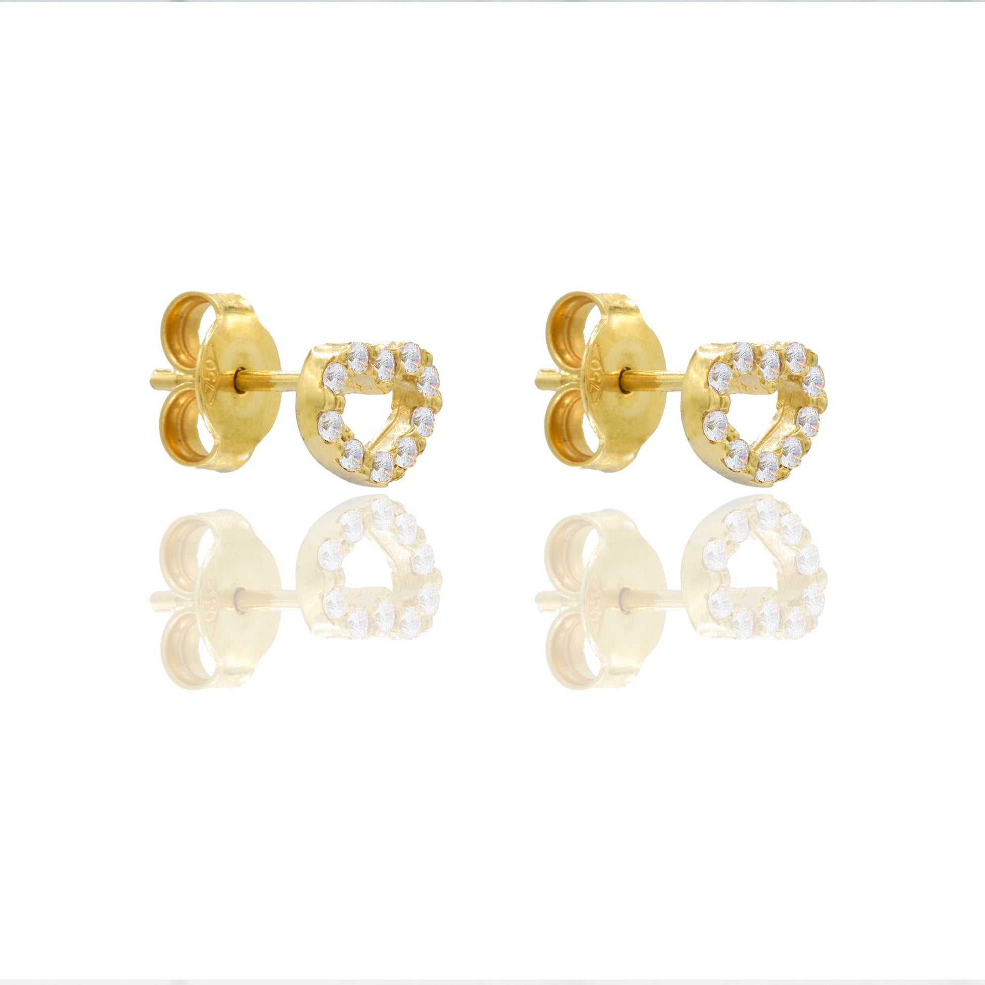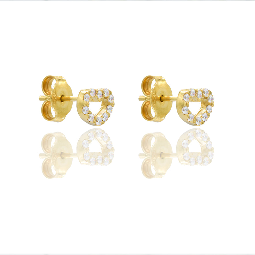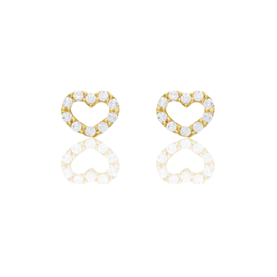 Orecchini in oro GIALLO Oro 18 carati Contorno cuore pavè Zirconi Bianchi lunghezza cm.0,50 larghezza cm.0,40 Gr. 1,3