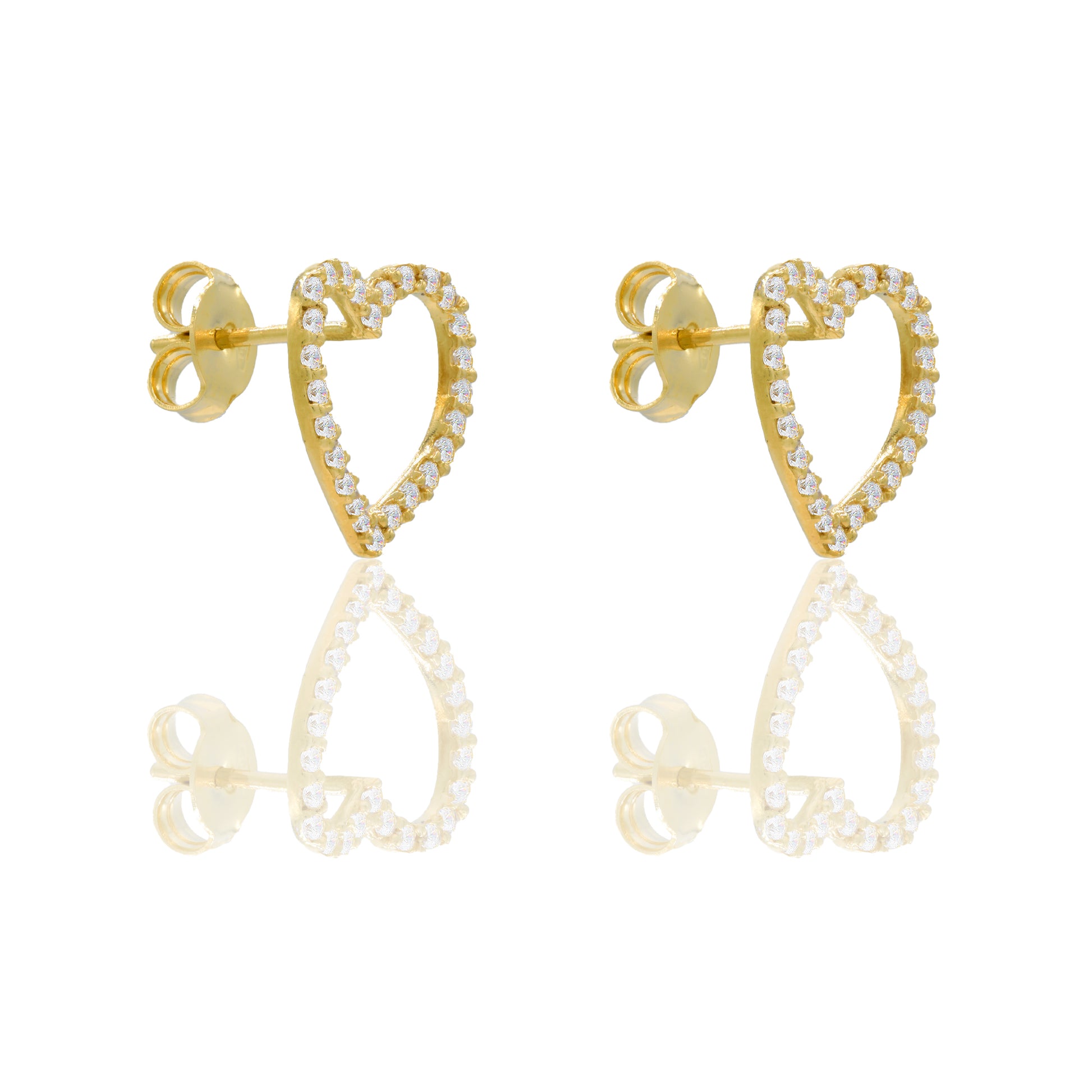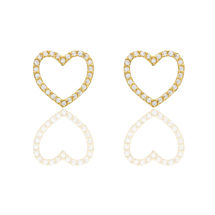 Orecchini in oro GIALLO Oro 18 carati Contorno cuore pavè Zirconi Bianchi lunghezza cm.1,30 larghezza cm.1,00 Gr. 1,8