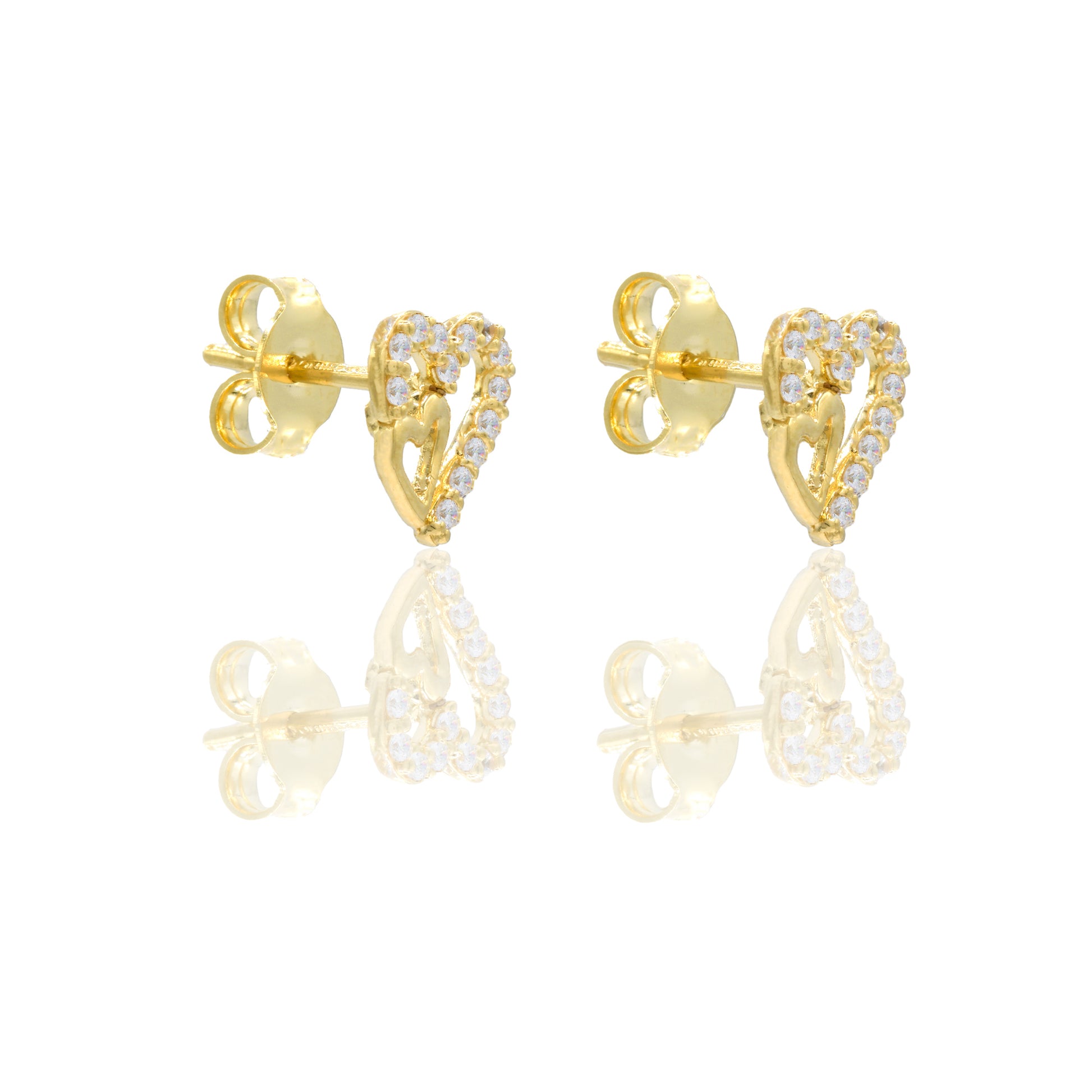 Orecchini in oro GIALLO Oro 18 carati Contorno doppio cuore pavè Zirconi Bianchi lunghezza cm.0,80 larghezza cm.0,70 Gr. 1,55