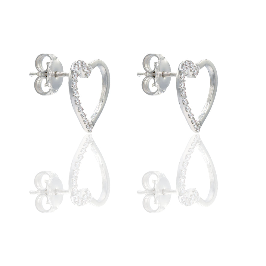 Orecchini in oro BIANCO Oro 18 carati Cuore pavè Zirconi Bianchi lunghezza cm.1,3 larghezza cm.1 Gr. 1,65