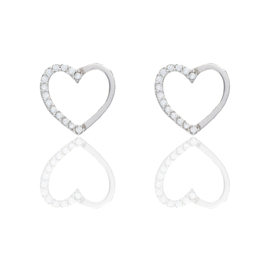 ORECCHINI DONNA CUORE META' LUCIDO META' ZIRCONATO PAVE'
