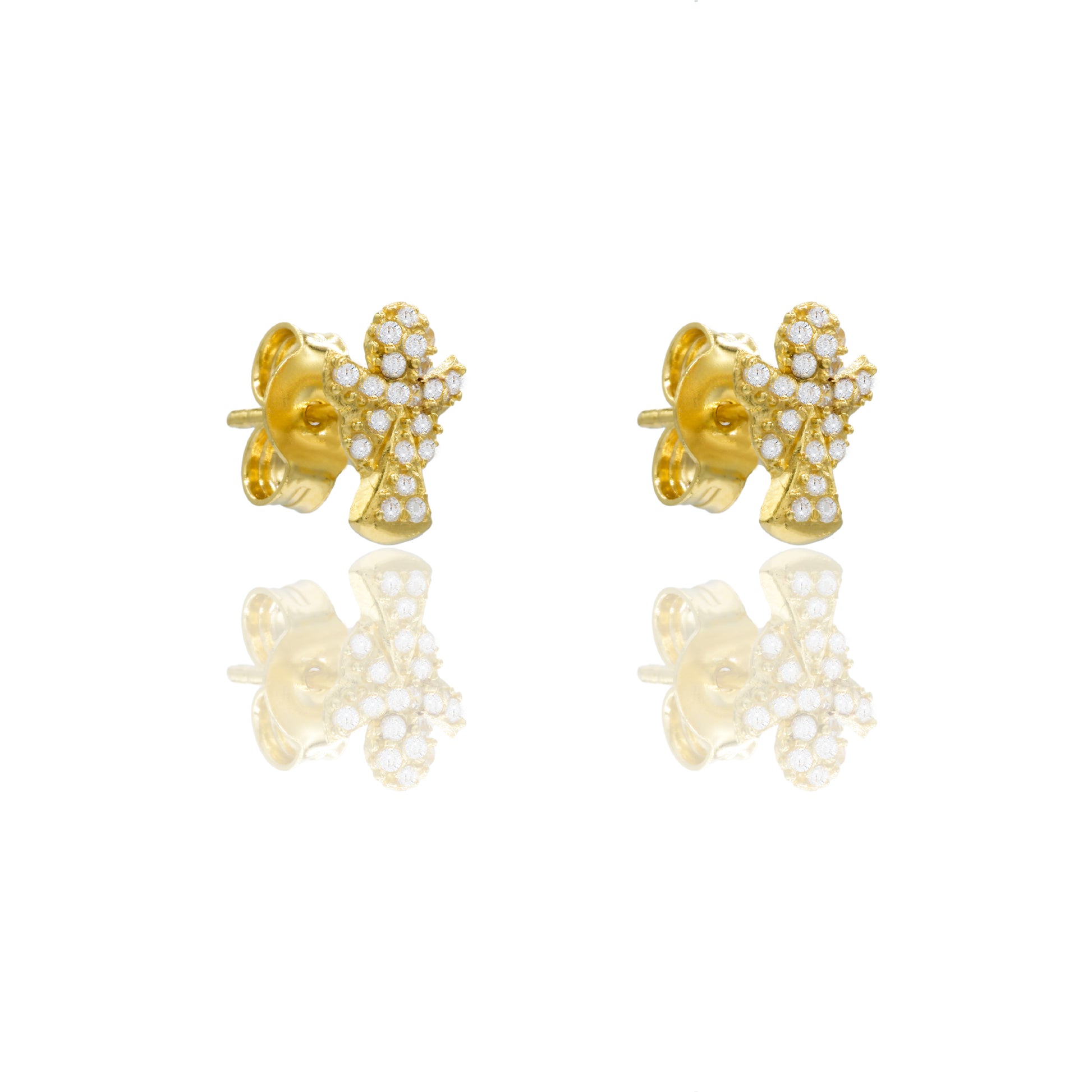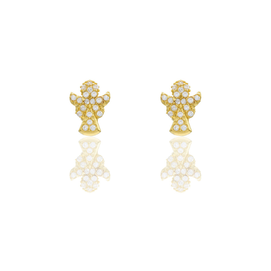 Orecchini in oro GIALLO Oro 18 carati Angioletto pavè Zirconi Bianchi lunghezza cm.0,8 larghezza cm.0,5 Gr. 1,35
