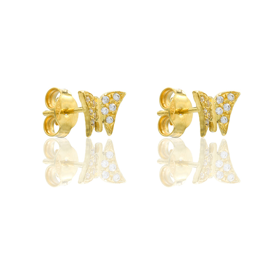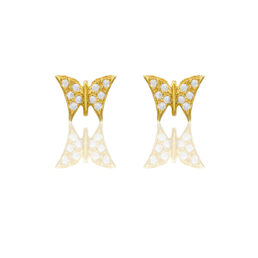 Orecchini in oro GIALLO Oro 18 carati Farfalla pavè Zirconi Bianchi lunghezza cm.0,9 larghezza cm.0,5 Gr. 1,4