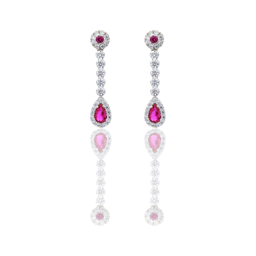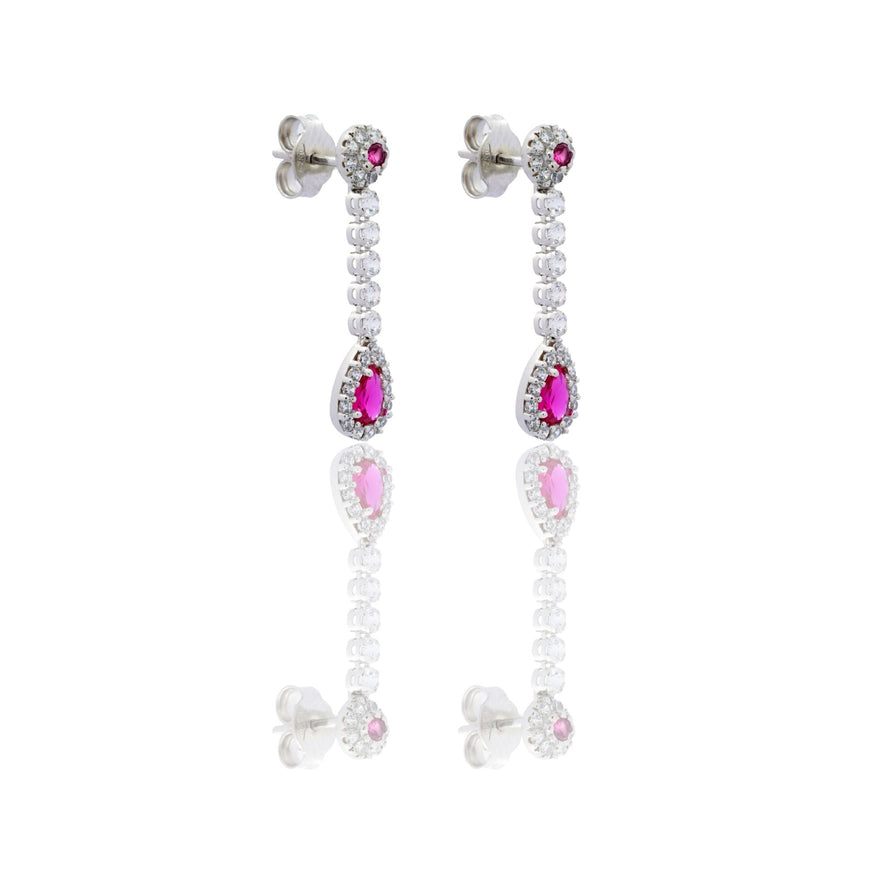 Orecchini in oro BIANCO Oro 18 carati Goccia Pendente Zirconi Bianchi, Zirconi Rossi Gr. 1,35