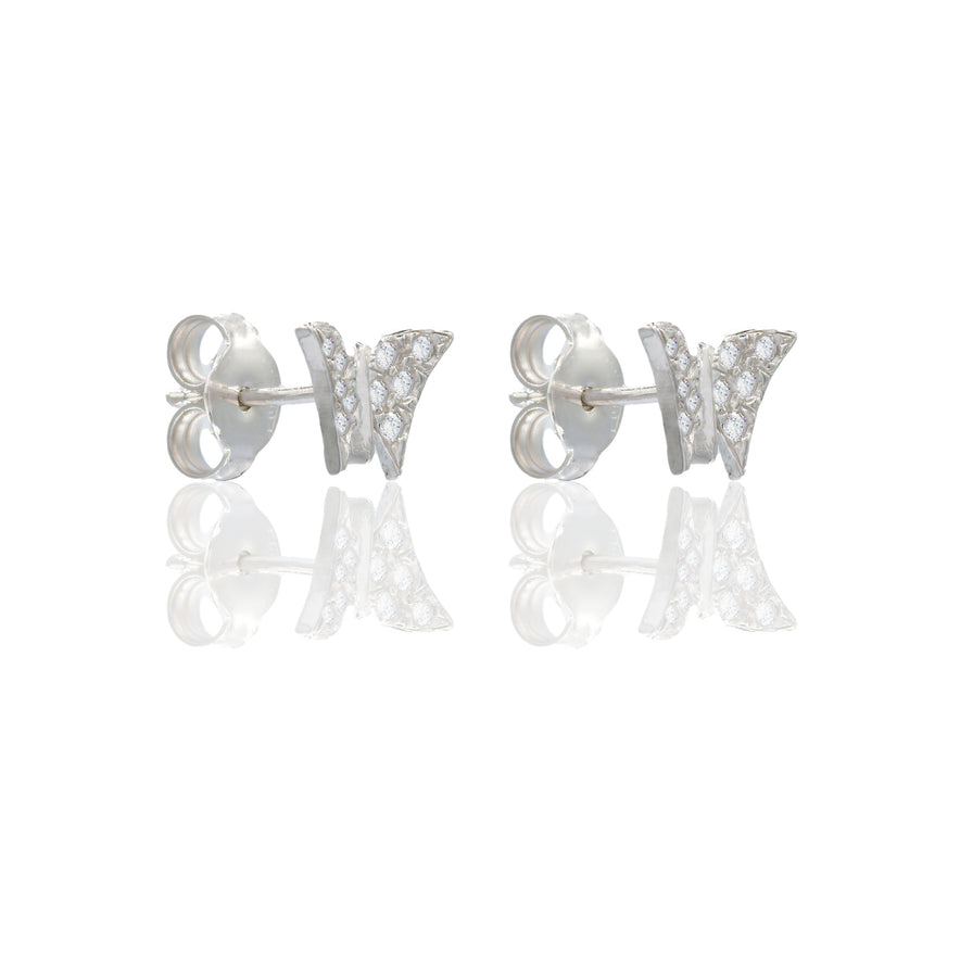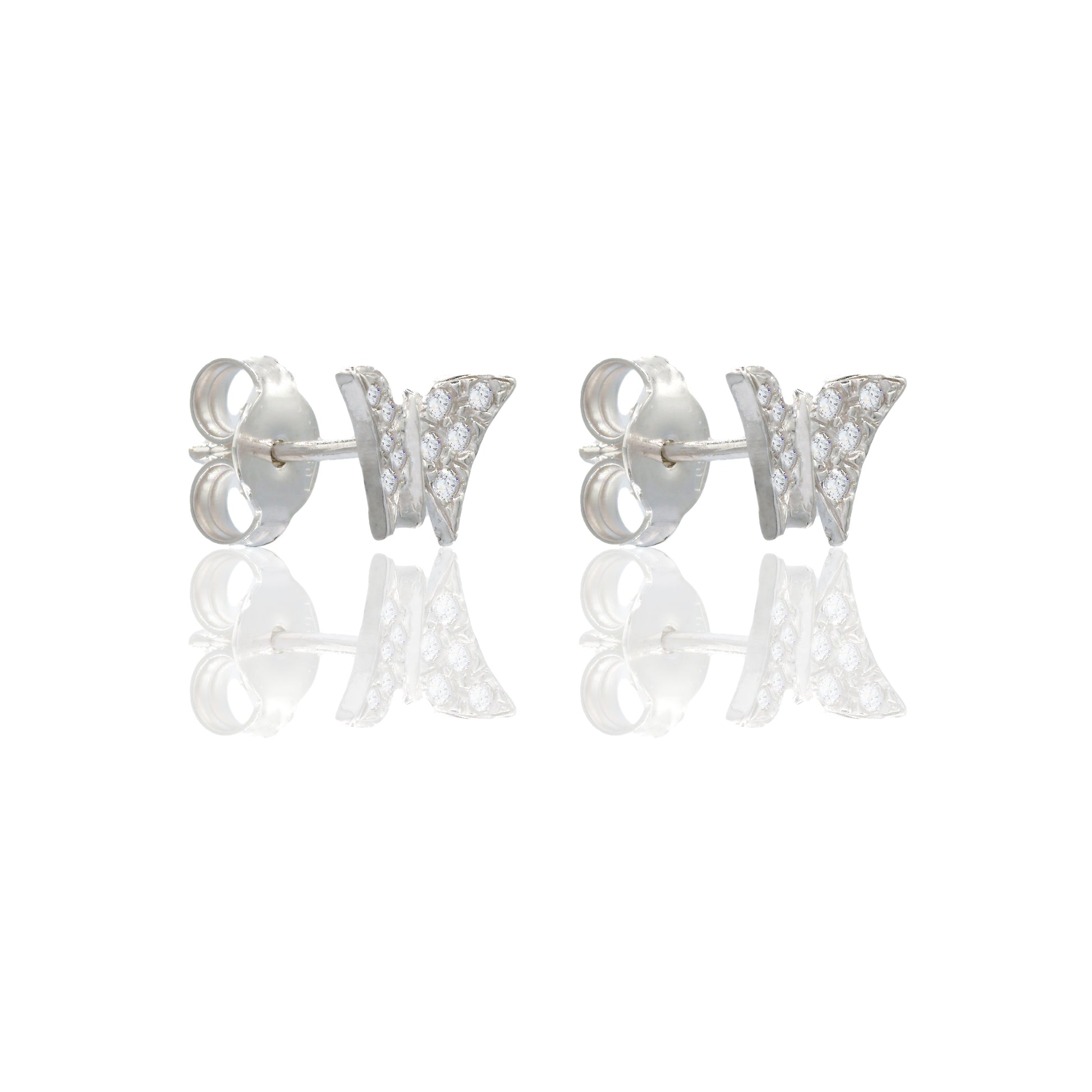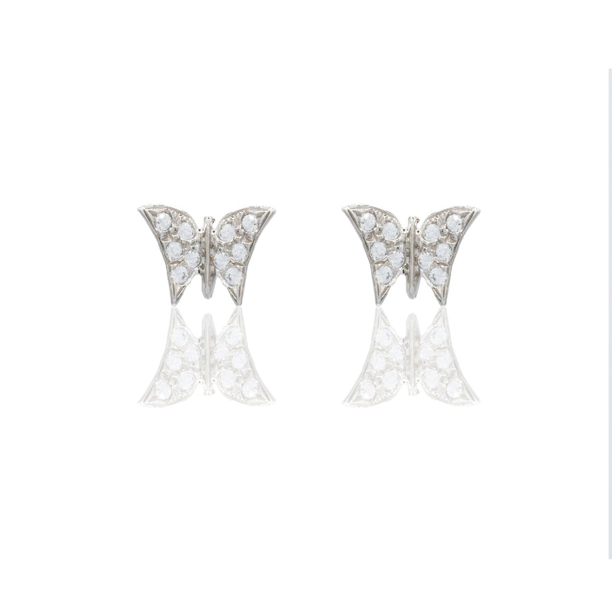 Orecchini in oro BIANCO Oro 18 carati Farfalla pavè Zirconi Bianchi lunghezza cm.0,9 larghezza cm.0,5 Gr. 1,4