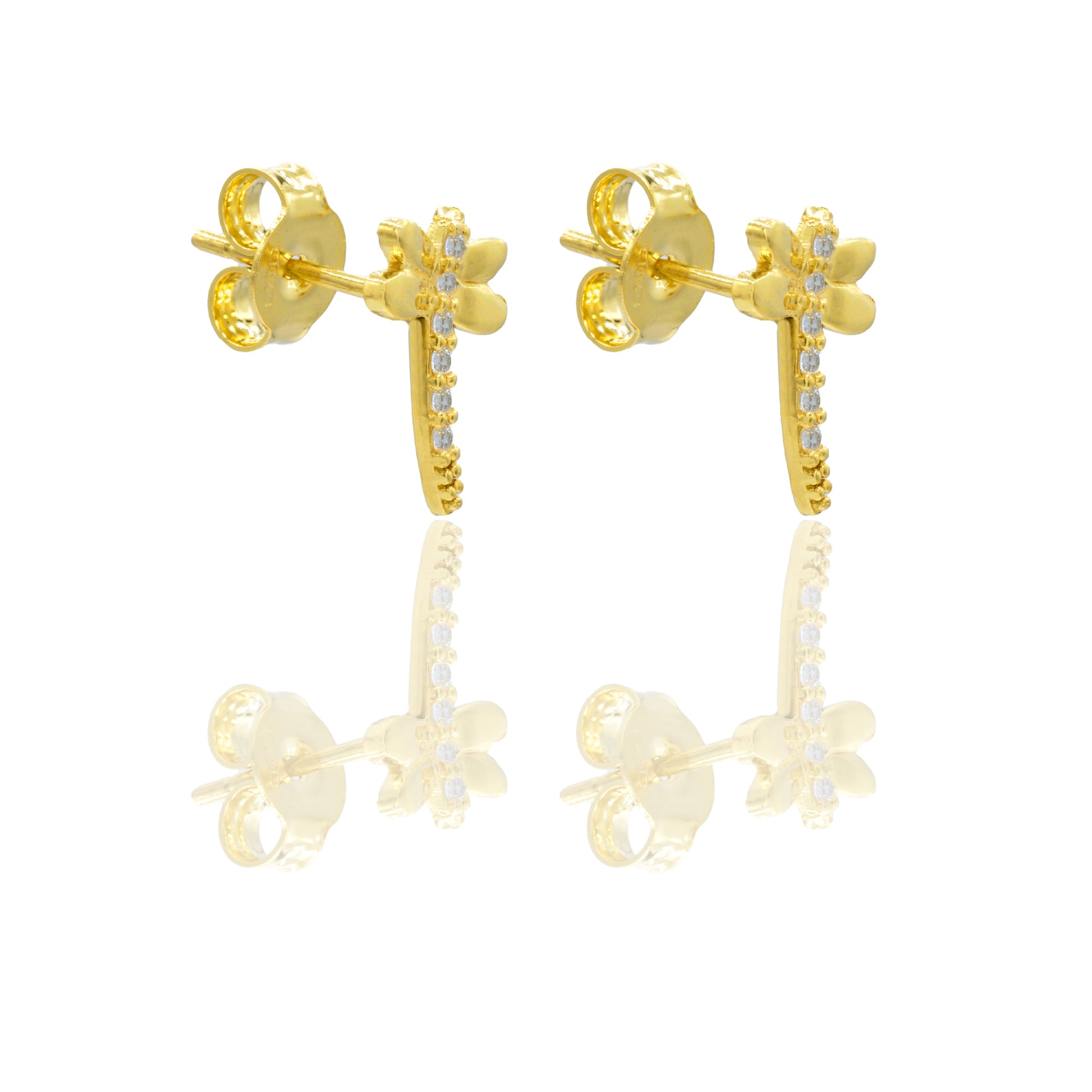 Orecchini in oro GIALLO Oro 18 carati Libellula pavè Zirconi Bianchi lunghezza cm.1,00 larghezza cm.0,6 Gr. 1,4