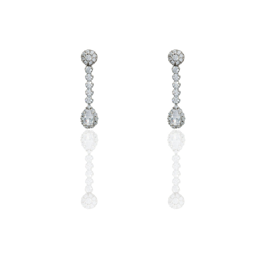 Orecchini in oro BIANCO Oro 18 carati Tennis e goccia pavè Zirconi Bianchi lunghezza cm. 2,50 Gr. 2,6