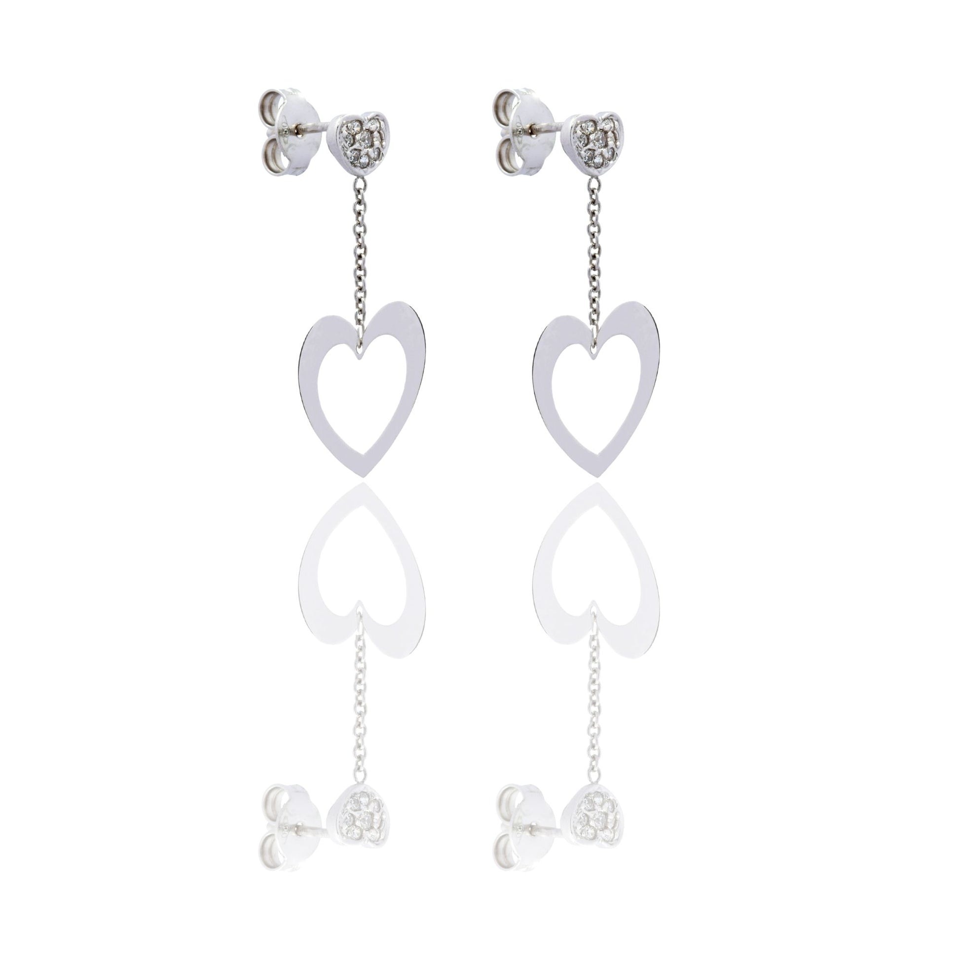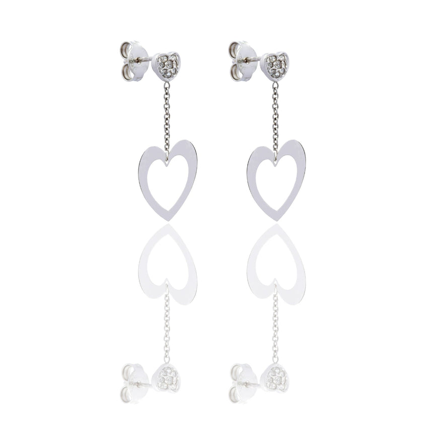 Orecchini in oro BIANCO Oro 18 carati Cuore A Lastra Pendente Zirconi Bianchi Gr. 2,15