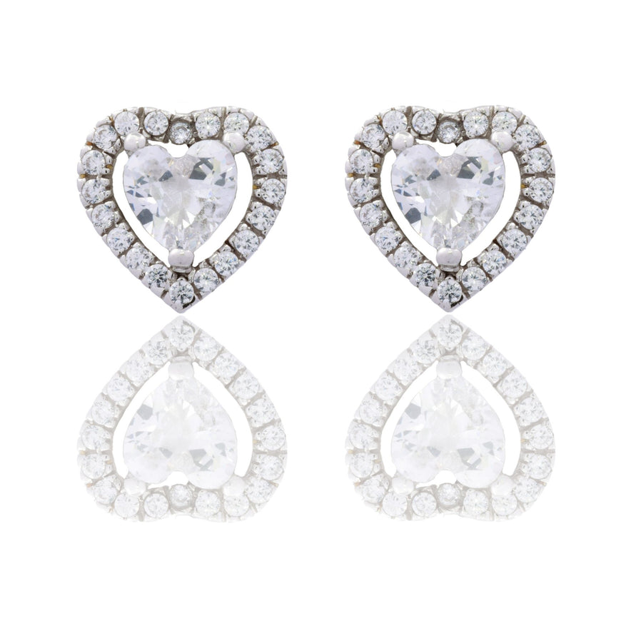 Orecchini in oro BIANCO Oro 18 carati Cuore a lobo centro e contorno pavè Zirconi Bianchi cm. 1 Gr. 2,6