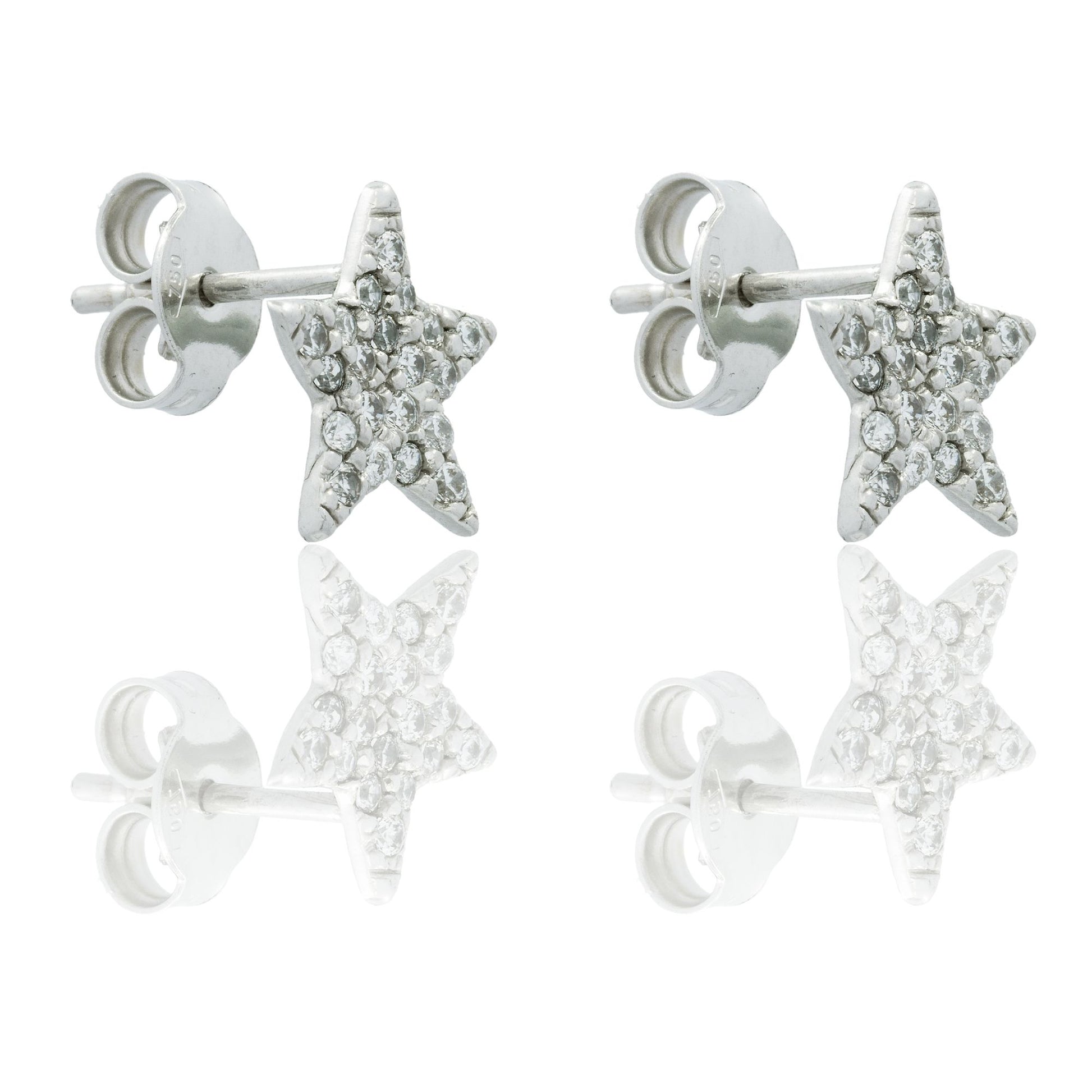Orecchini in oro BIANCO Oro 18 carati Stella A Lobo Zirconi Bianchi Gr. 1,5