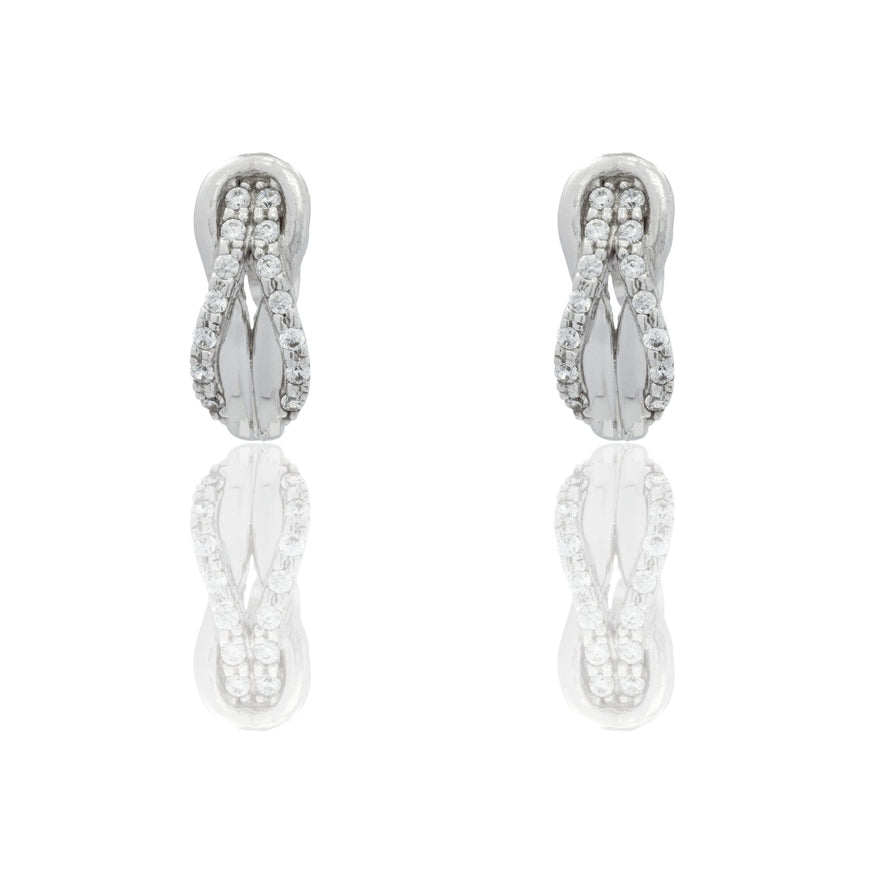 Orecchini in oro BIANCO Oro 18 carati Intrecciati A Lobo Zirconi Bianchi Gr. 2,8